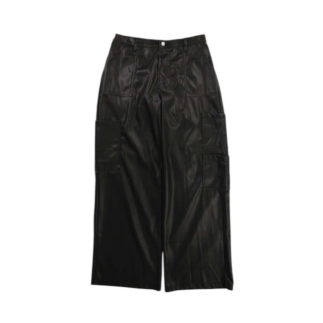 "Fake leather" wide cargo pants with belt loop【CU-8892】