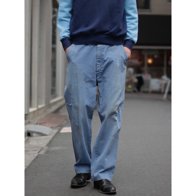 1960s~70s vintage nice aiging cotton twill work pants【CU-8973】