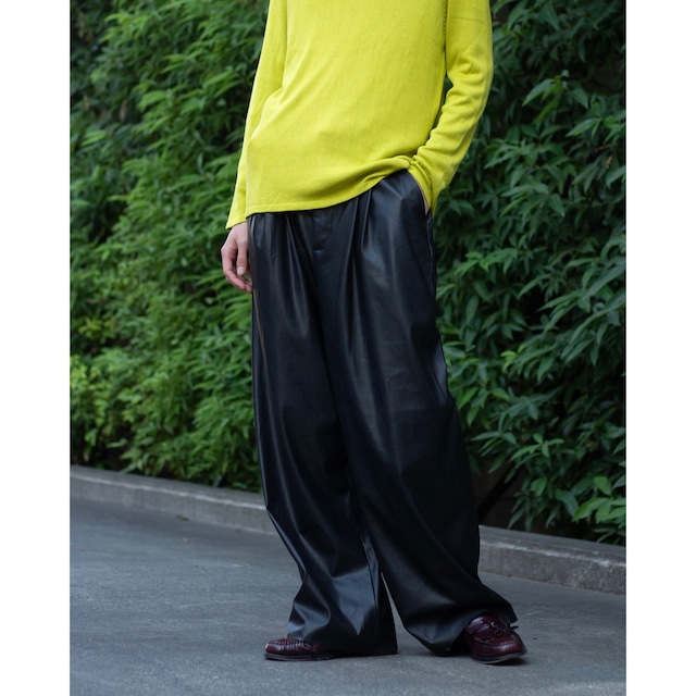fake leather wide straight 2-tuck slacks【CO-6636】