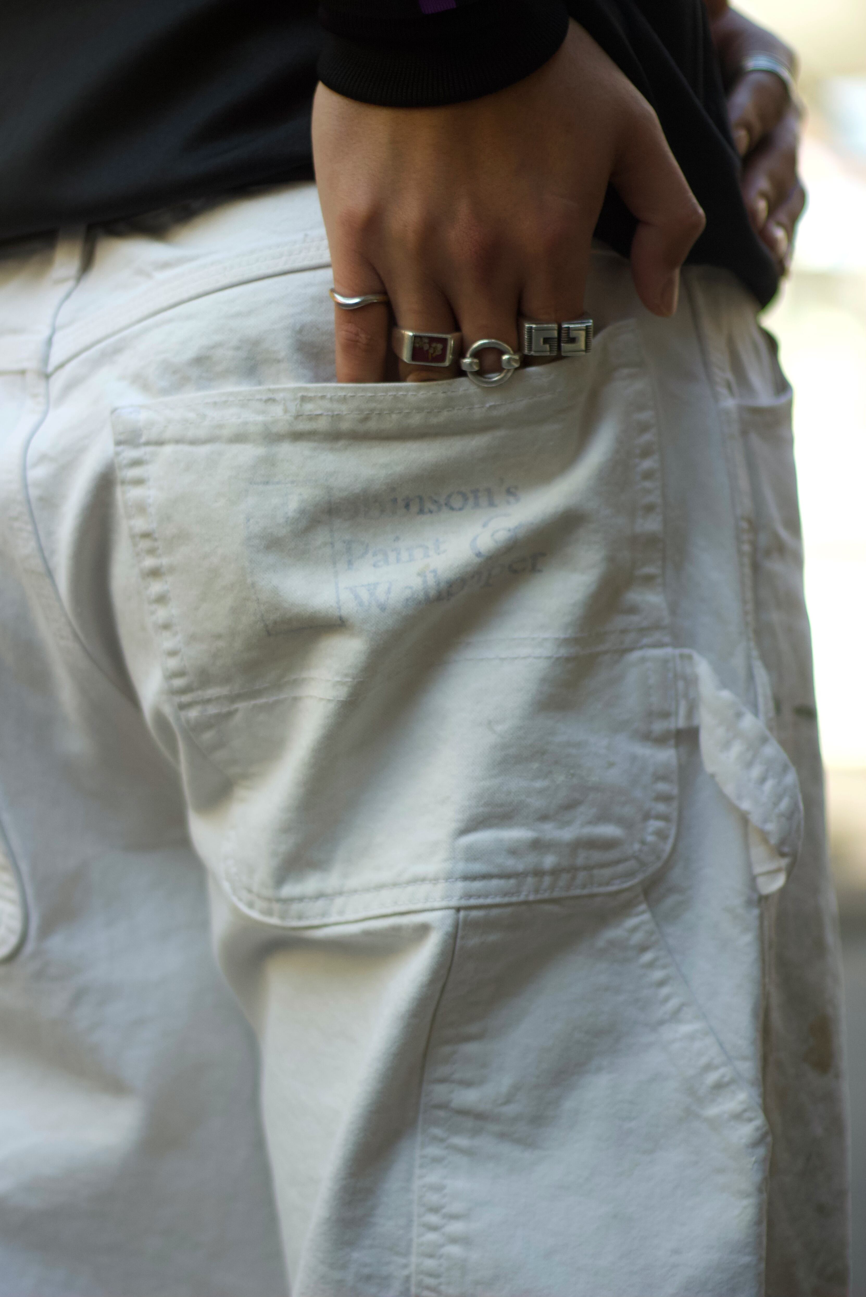 ペインターパンツに白が多い理由に、塗料の色を確認する意味もあるのだそうです。
