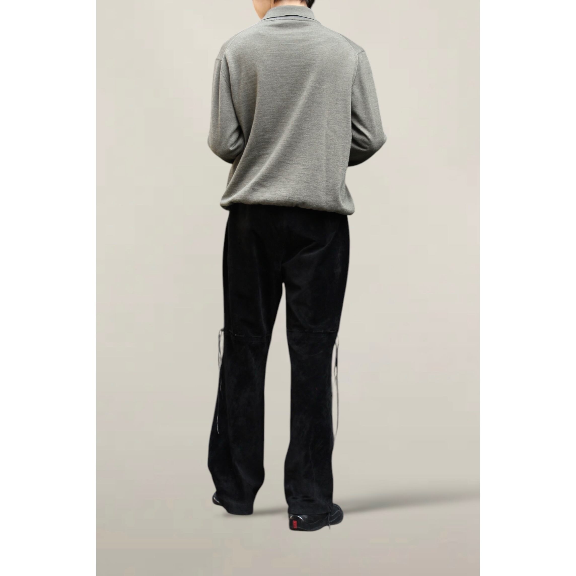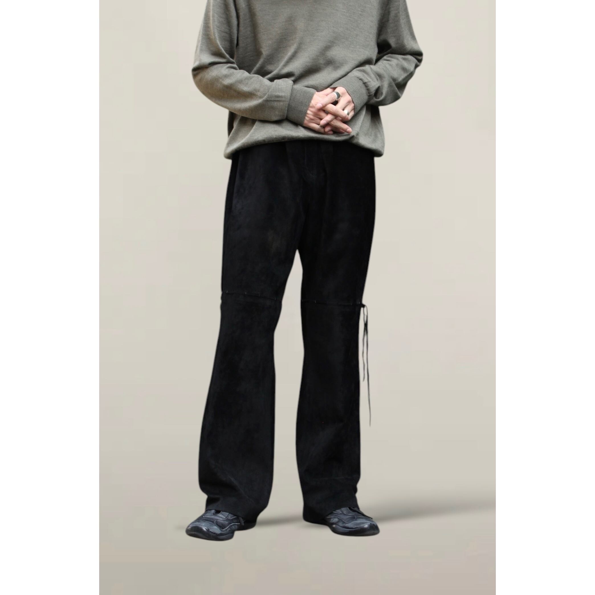 加えてブラックカラー。雰囲気はとてもモード。一才の野暮ったさがなくリアルスウェードならではのツヤや質感がいい味わいです。