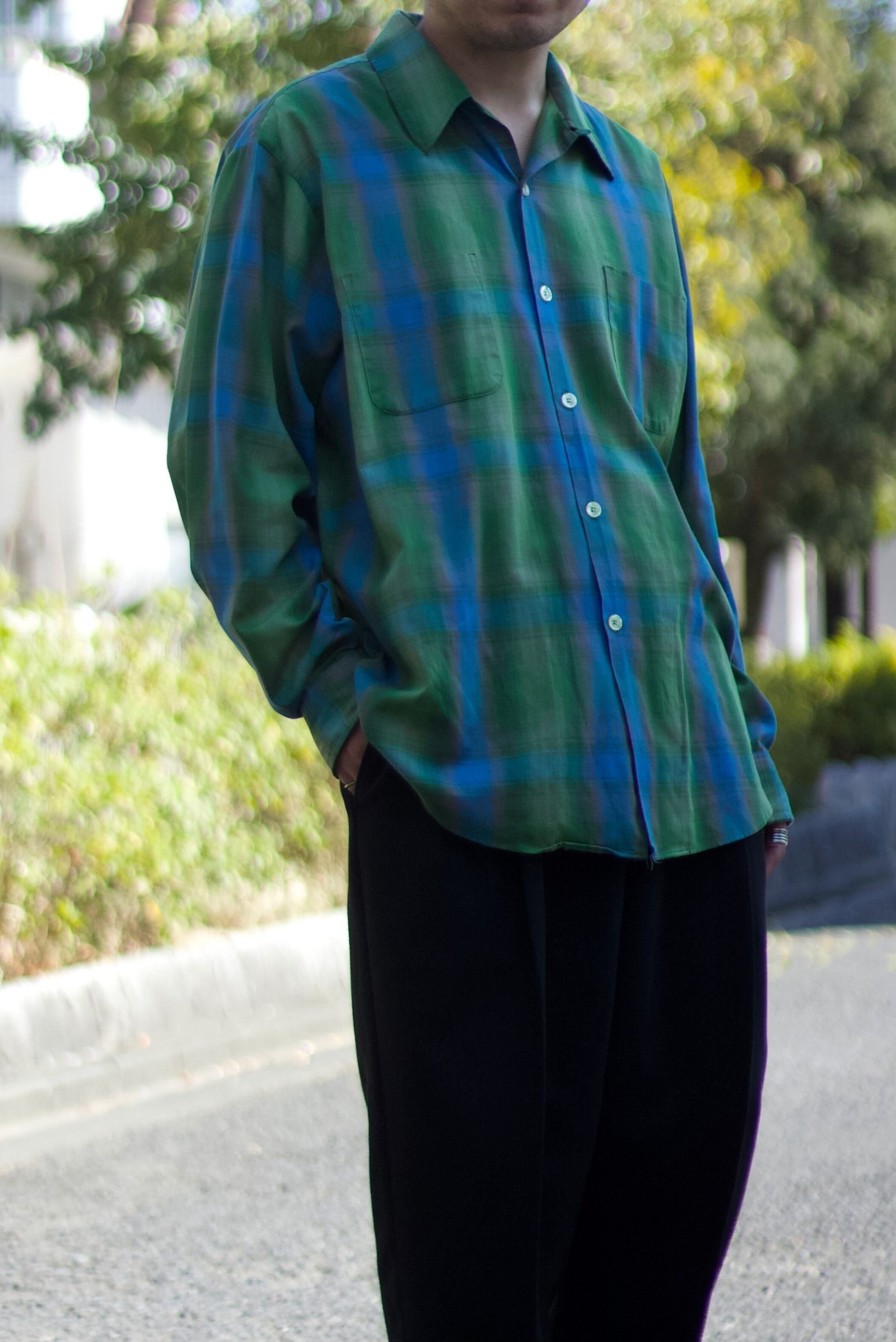 【CUBA】1970s vintage "Sears" ombre check open collar shirt-8422-
