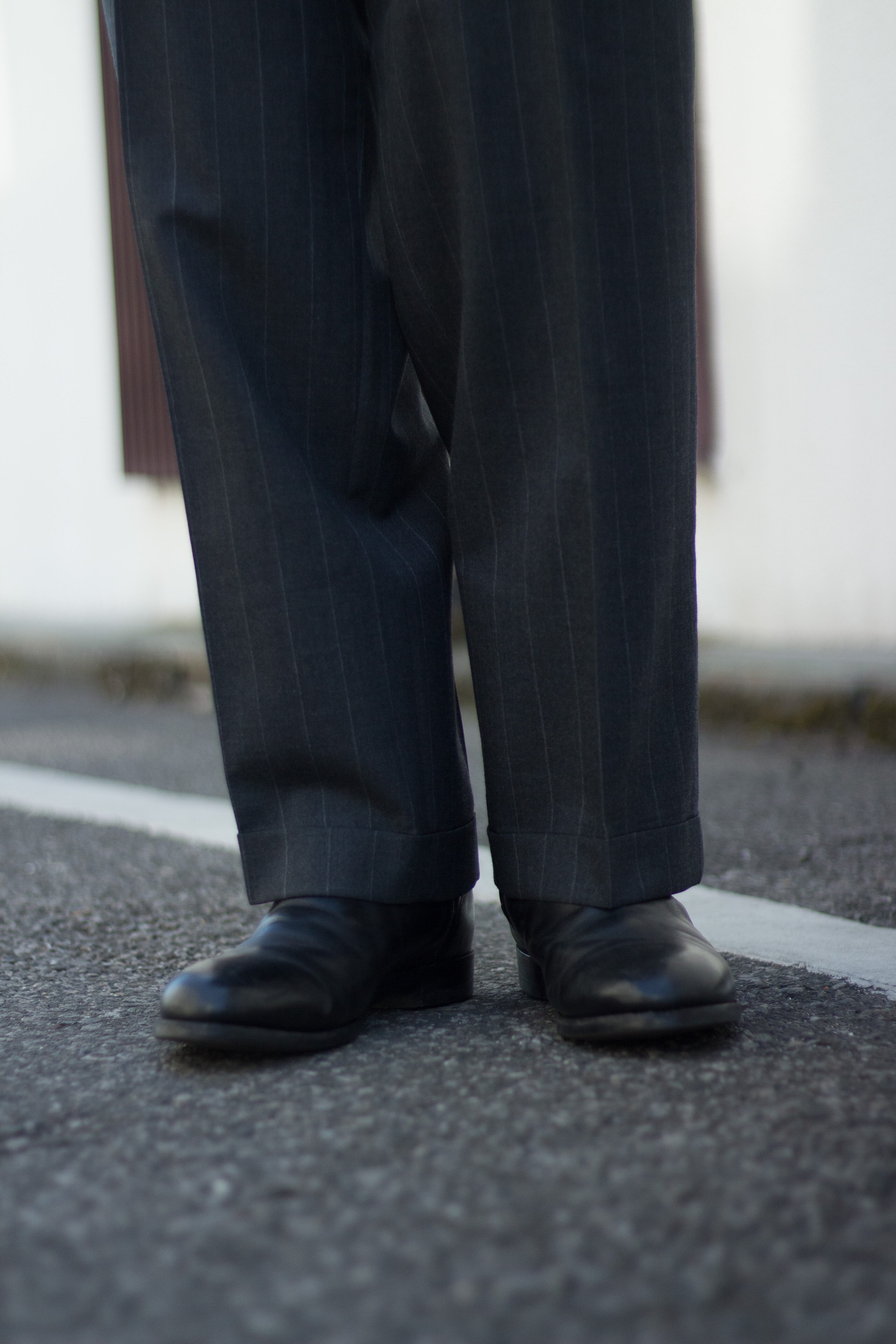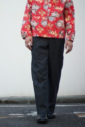 程よいウールファブリックでシックなグレーにストライプ仕様なので通年履けながら困ったら履いとけば間違いスラックス。