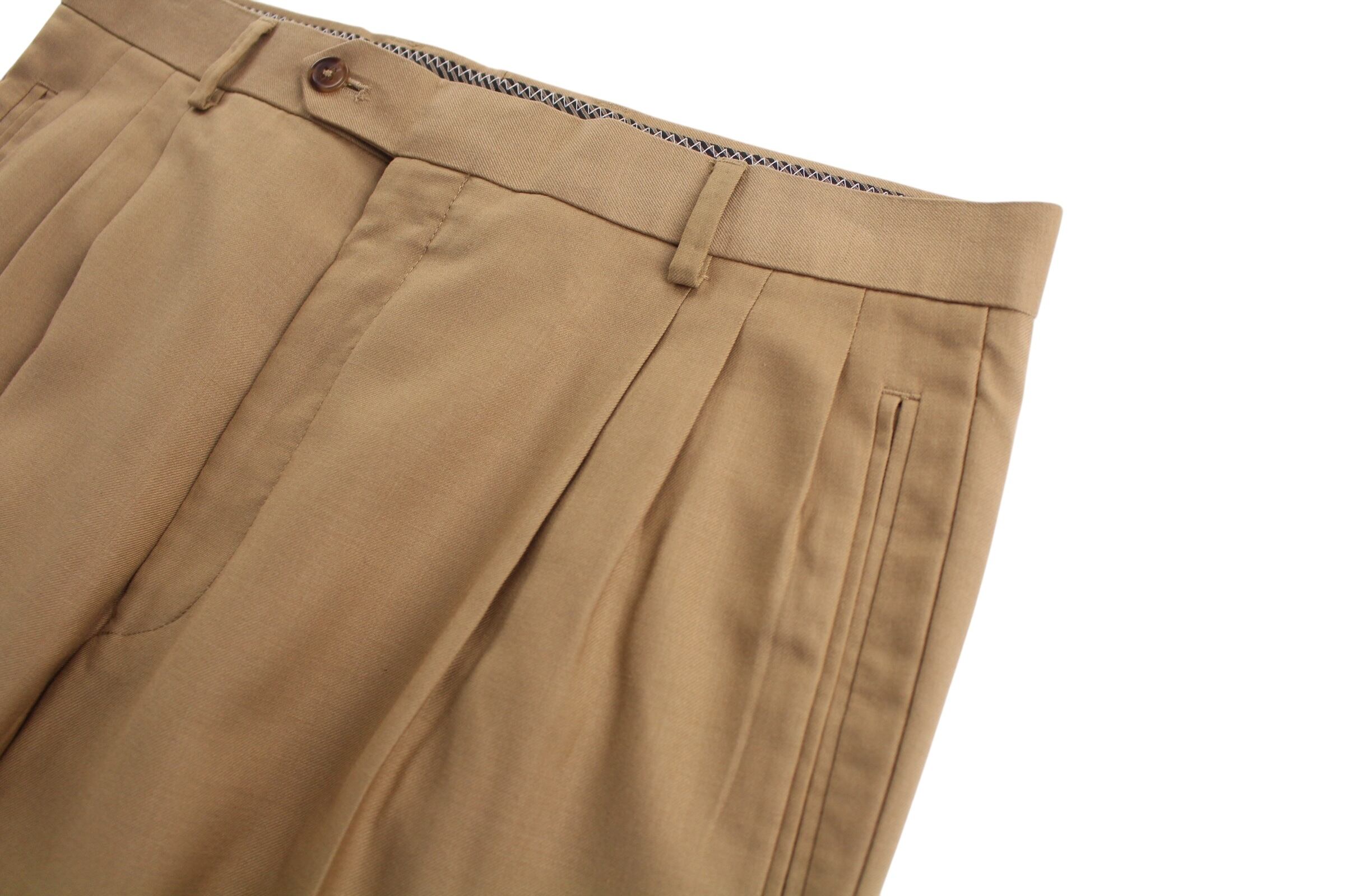 シルエットはテーパードが気にならない程のワイド。極太の3タックディティール。
