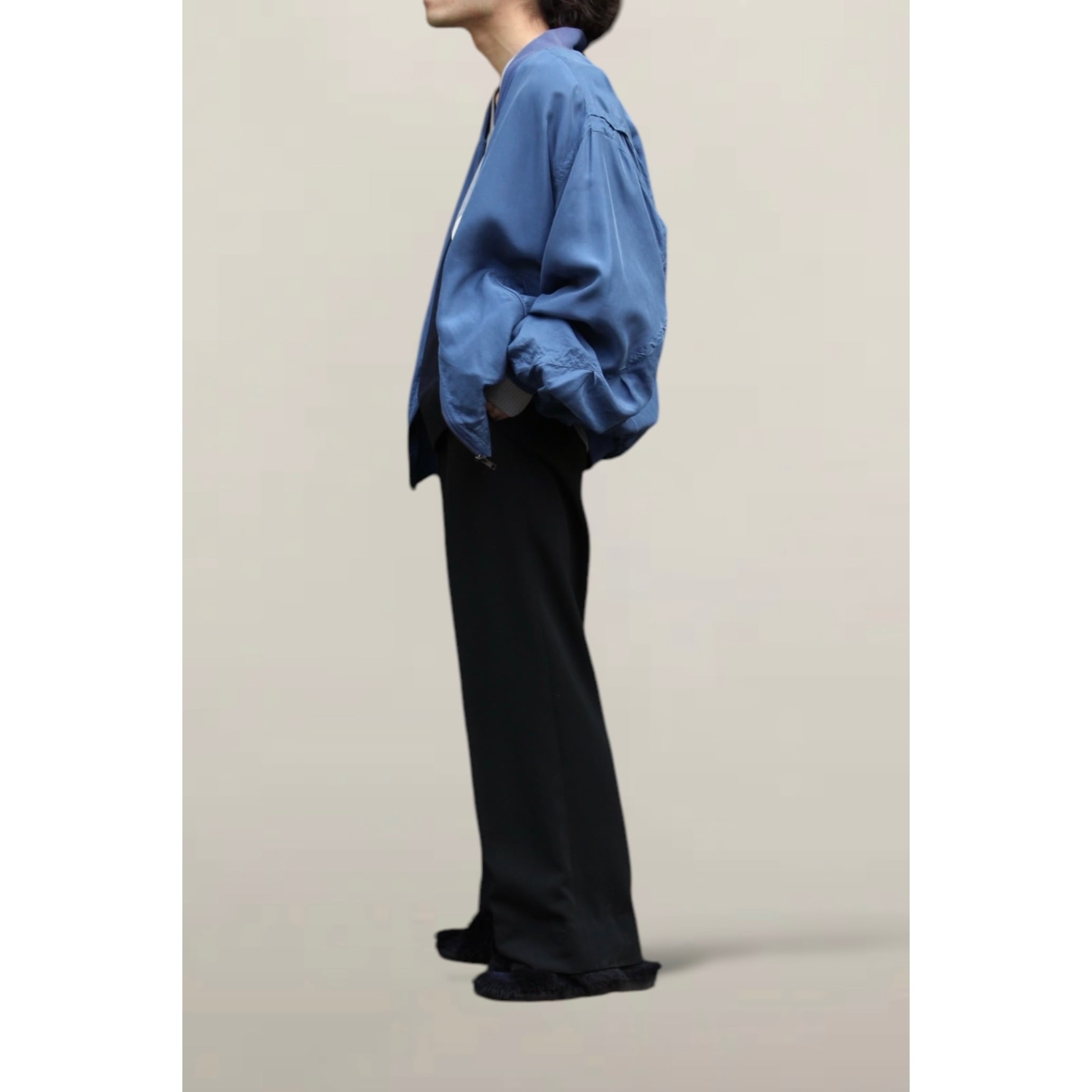 身幅もたっぷりとし、裾リブの効いた丸みのあるバルーンシルエットはユニセックスで着用でき、あらゆる方に馴染みが良いシルエットだと思います。丸襟なのでインナーもカットソーからシャツ、フーディーまで幅広く◎