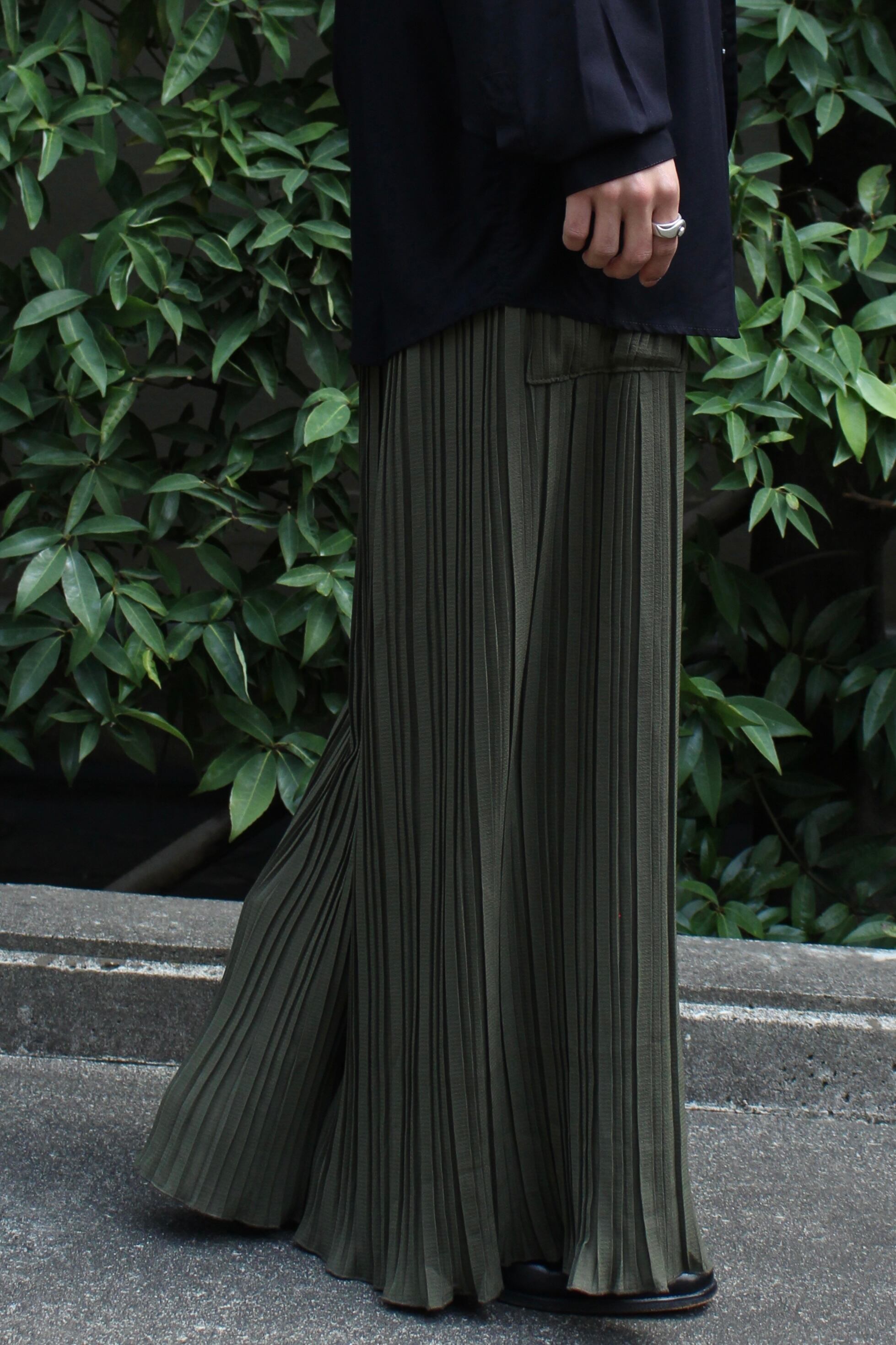 色味がオリーブとなっておりワイドストレートのシルエットになっているのですが裾幅がもの凄く広がってくれるのでドレープ感がかなり生まれてくるんです!