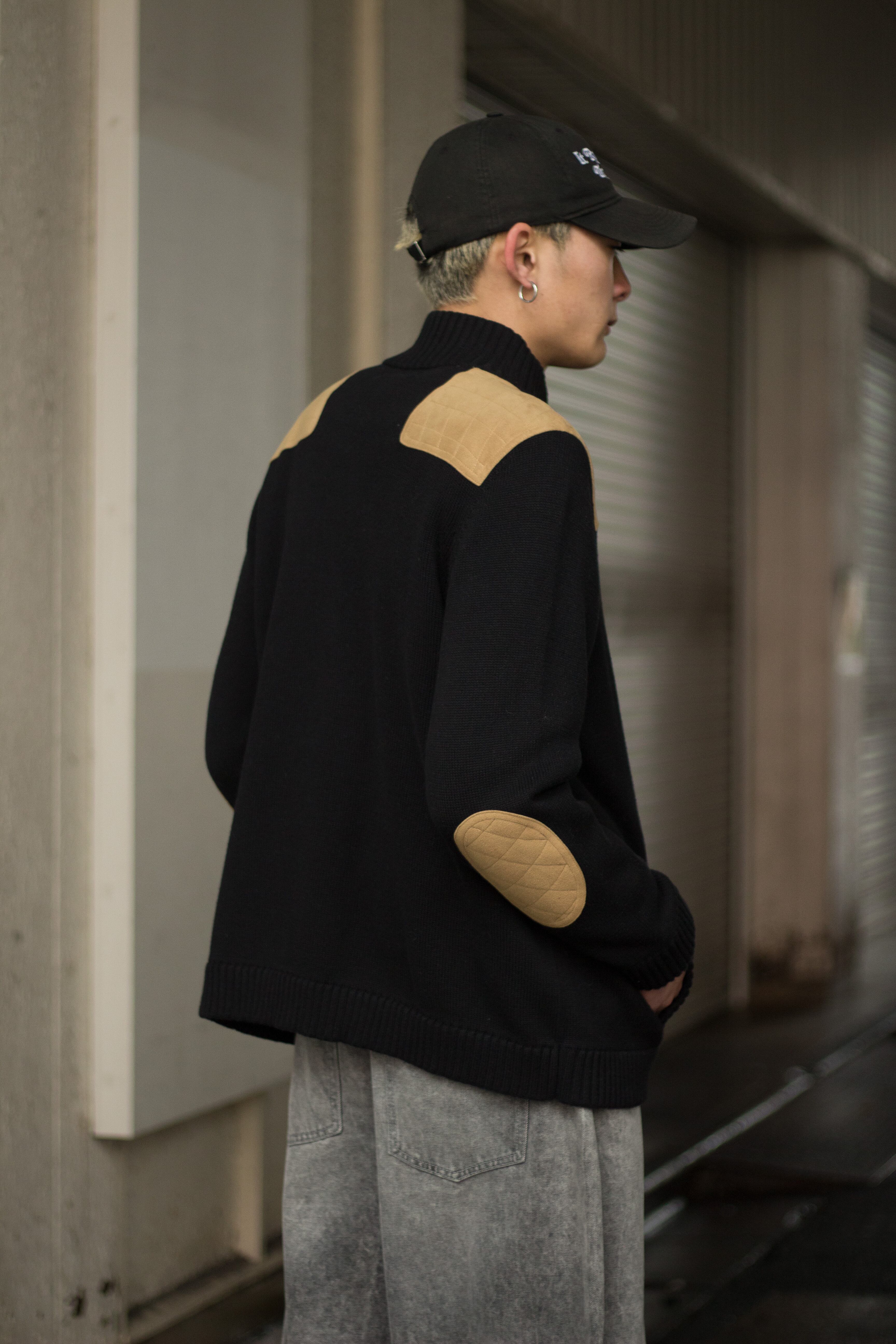 ブラック地に映えるフェイクスエードのショルダー&エルボーパッチが他ブランドとは一線を画す素晴らしいデザイン。ジップの引き手の"LRL"も◎