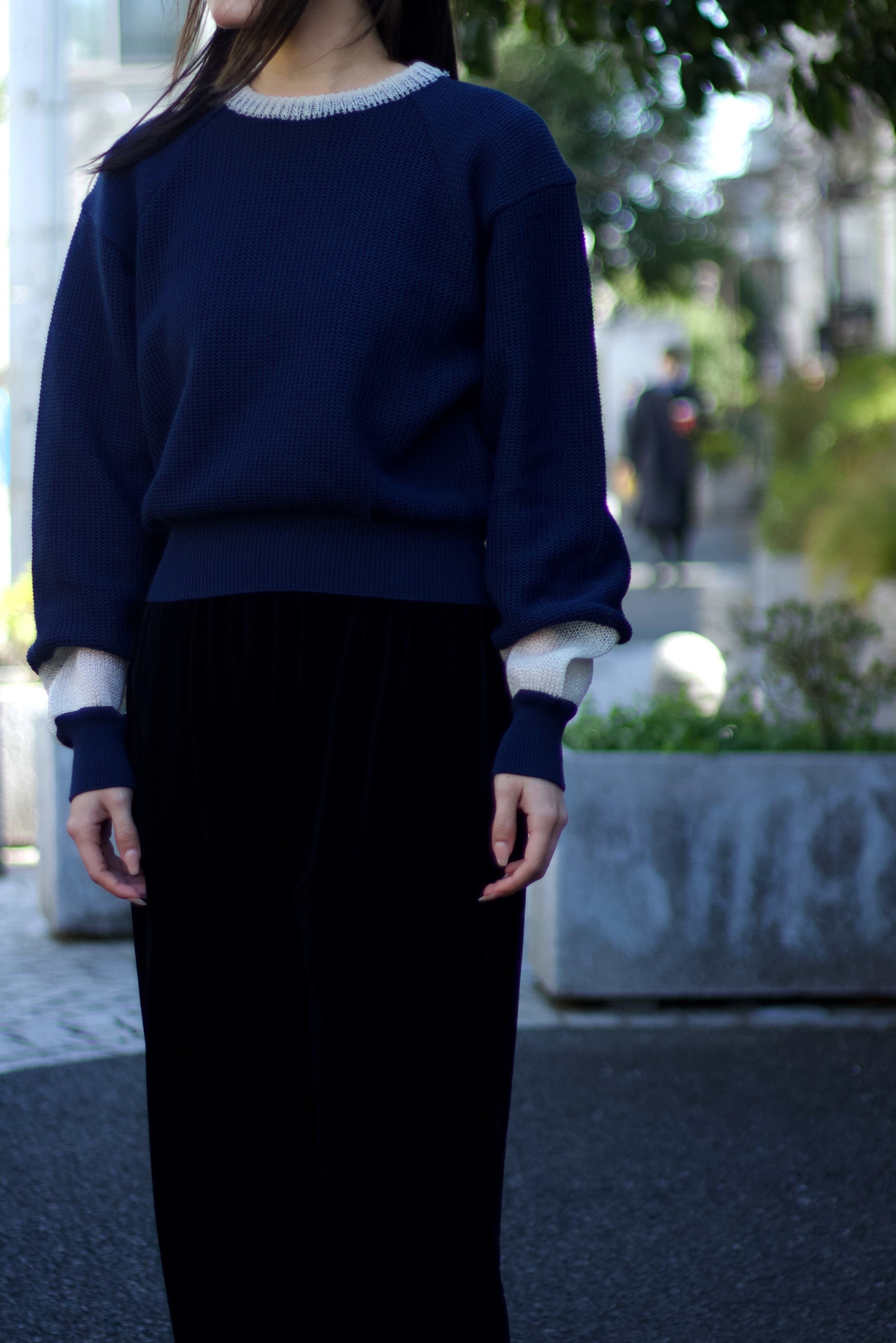 【CUBA】"TOGA PULLA" short length two tone knit -8442-