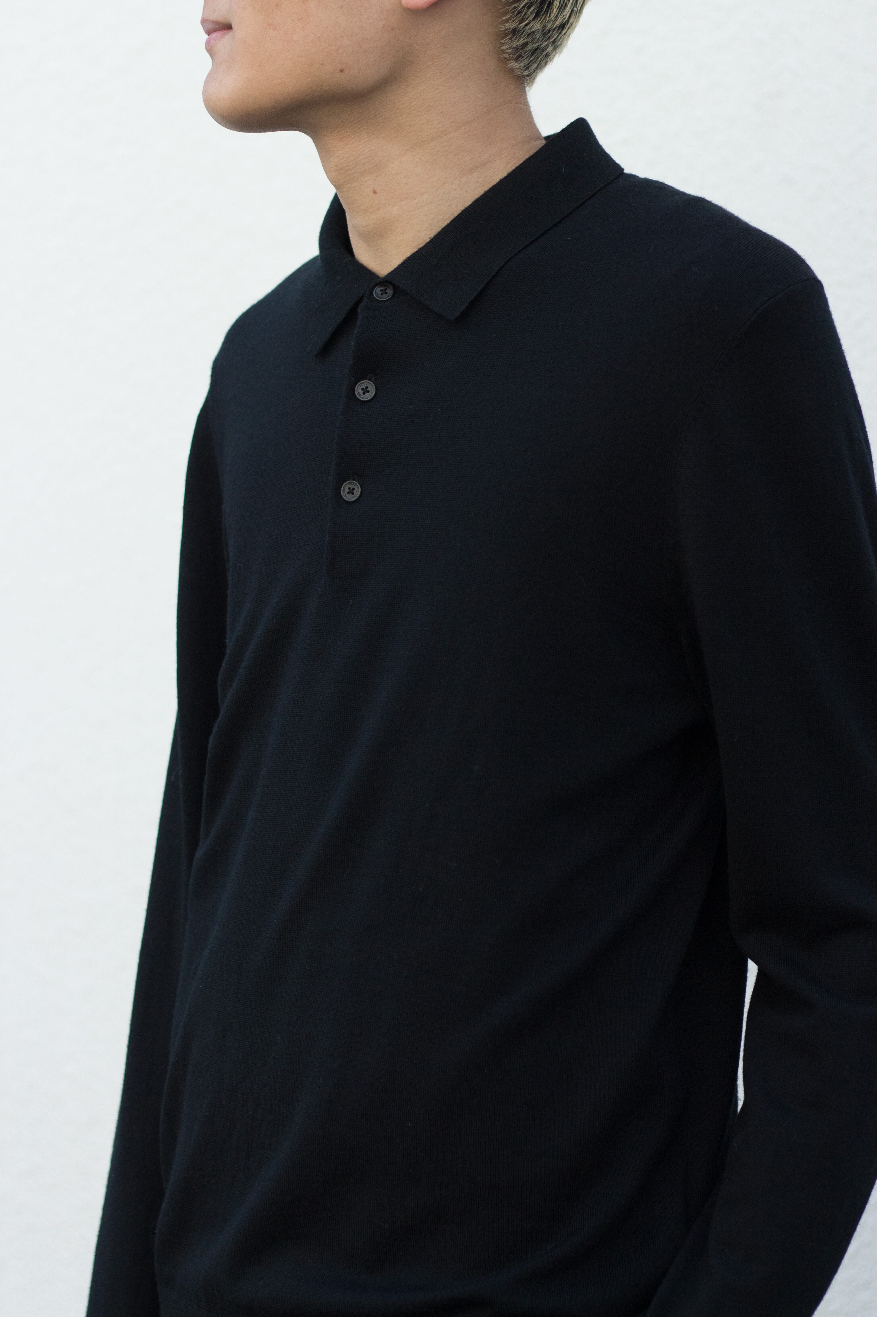 【FIFTY-FIFTY】HUGO BOSS Black color wool Knit polo -10341-