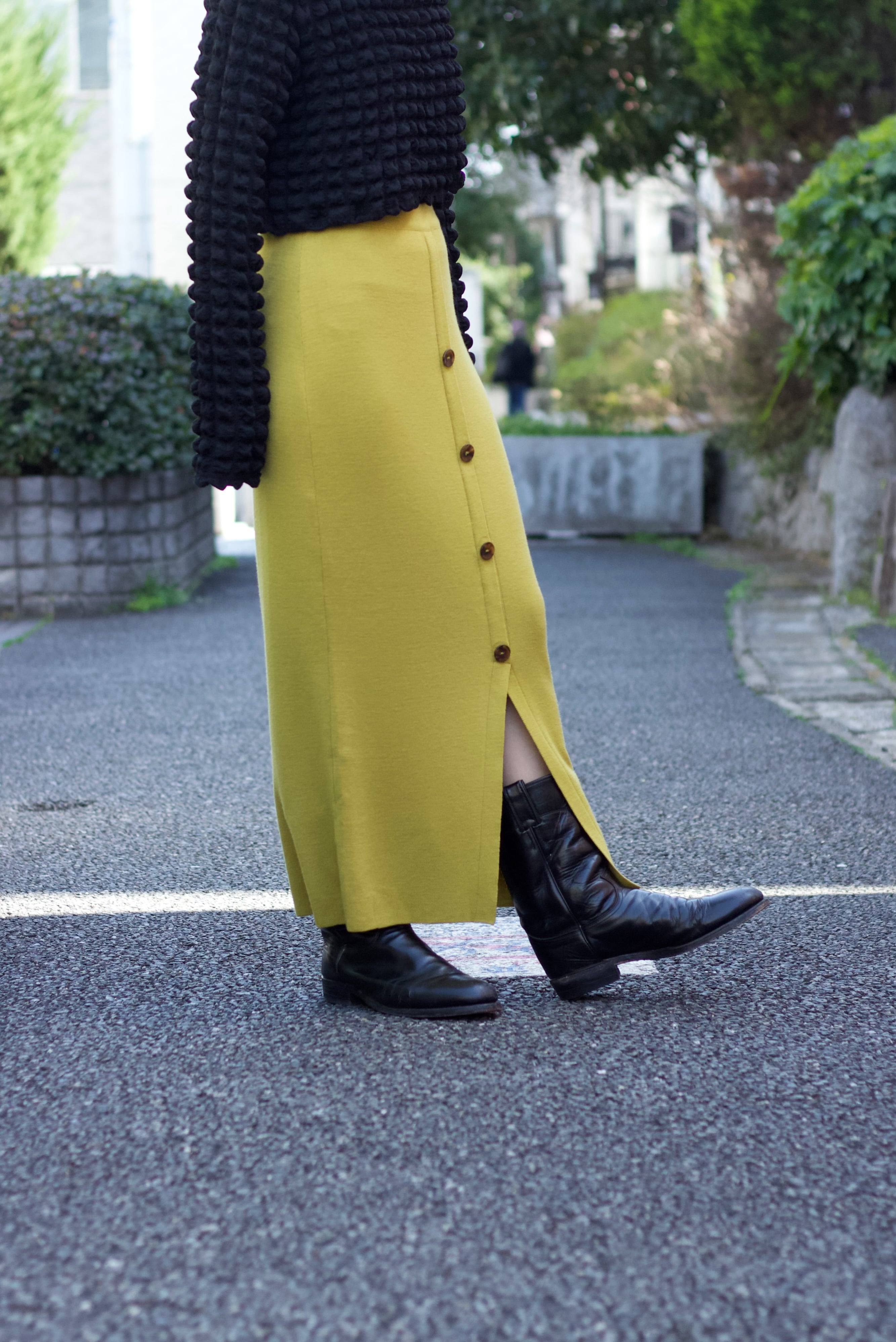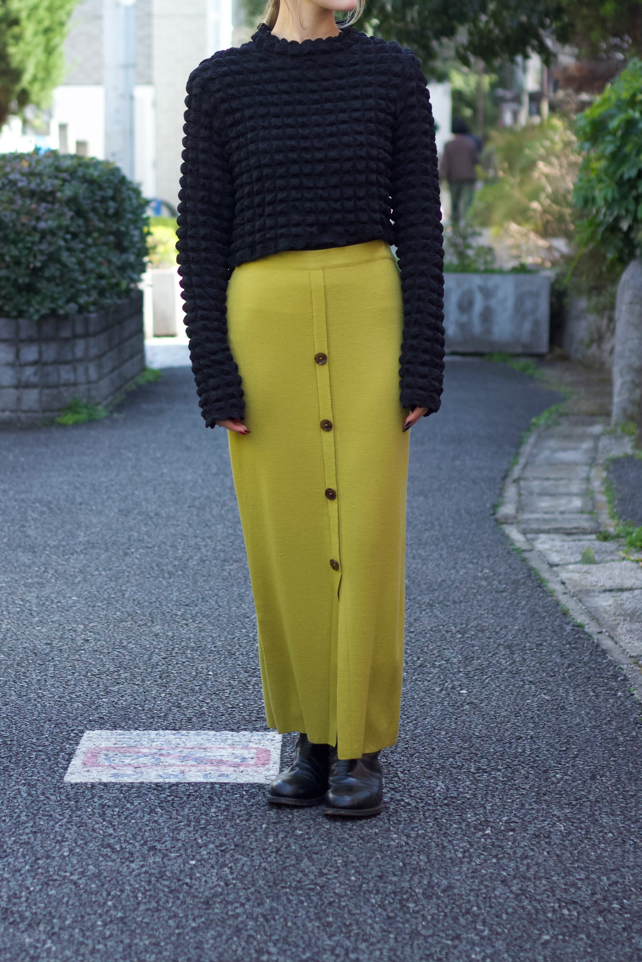 【CUBA】1990s vintage "VETTA" mustard color tight knit skirt made in italy-8462-