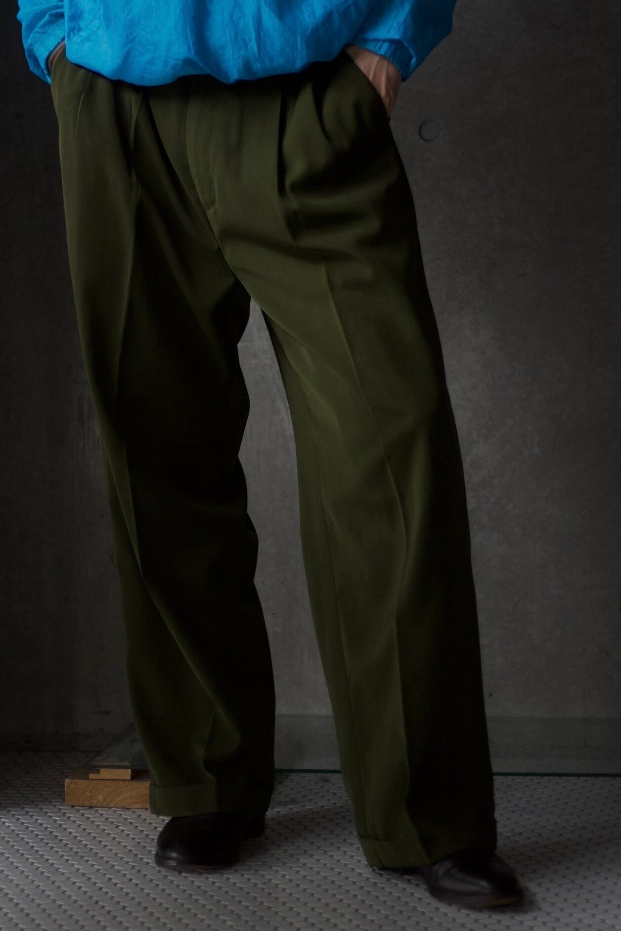 【MAKE MY DAY】1990s "satin" 2-tuck wide buggy slacks -0271-