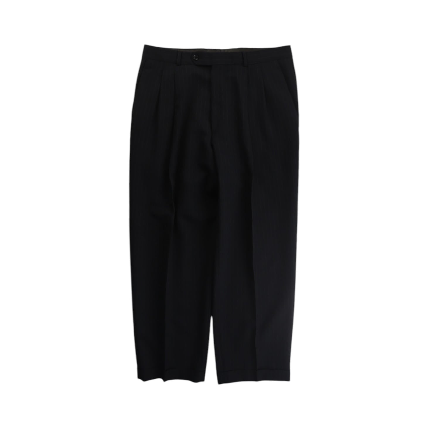 サイジングはルーズに。ゆったりと着用できるシルエット。ジャケットは3ボタンのシングル、パンツは2タックが入るワイドな形です。