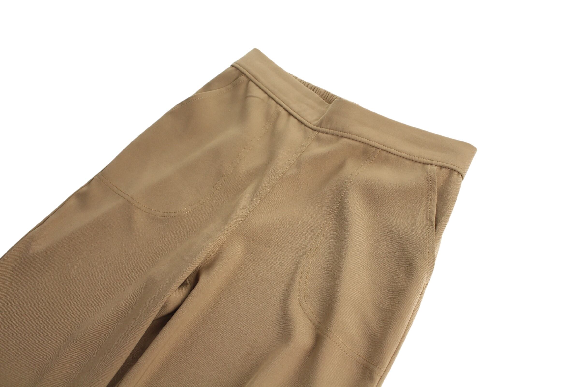 ウエストの後ろ部分がゴムになっているイージー仕様ながら履くととても上品な印象を楽しめる一本。