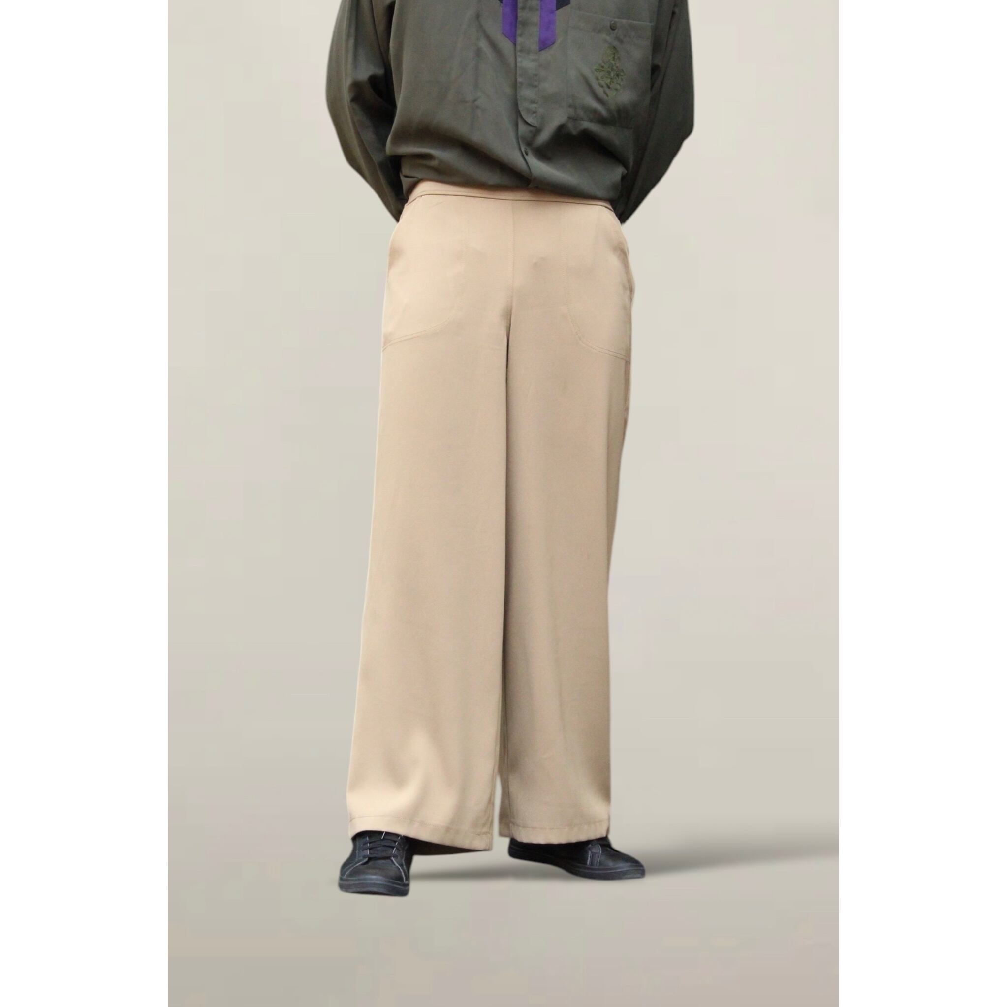 ほんのり艶もあり上品に。柔らかくストレスのないパンツ。生地も薄く動きのあるドレープ感を楽しんでいただけると思います☺︎