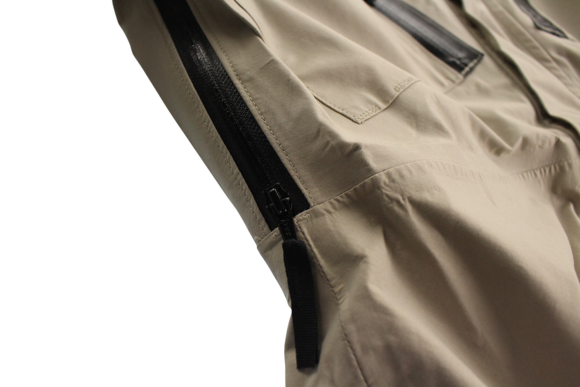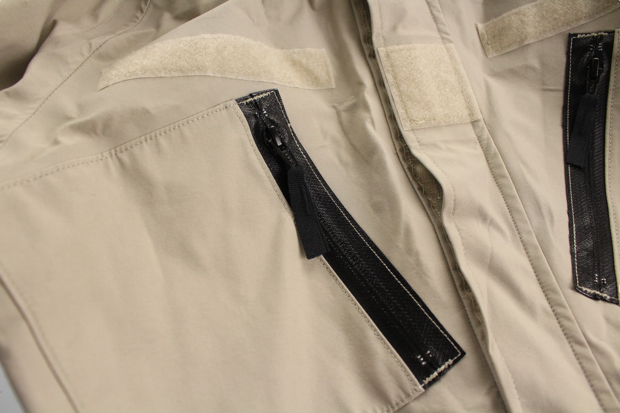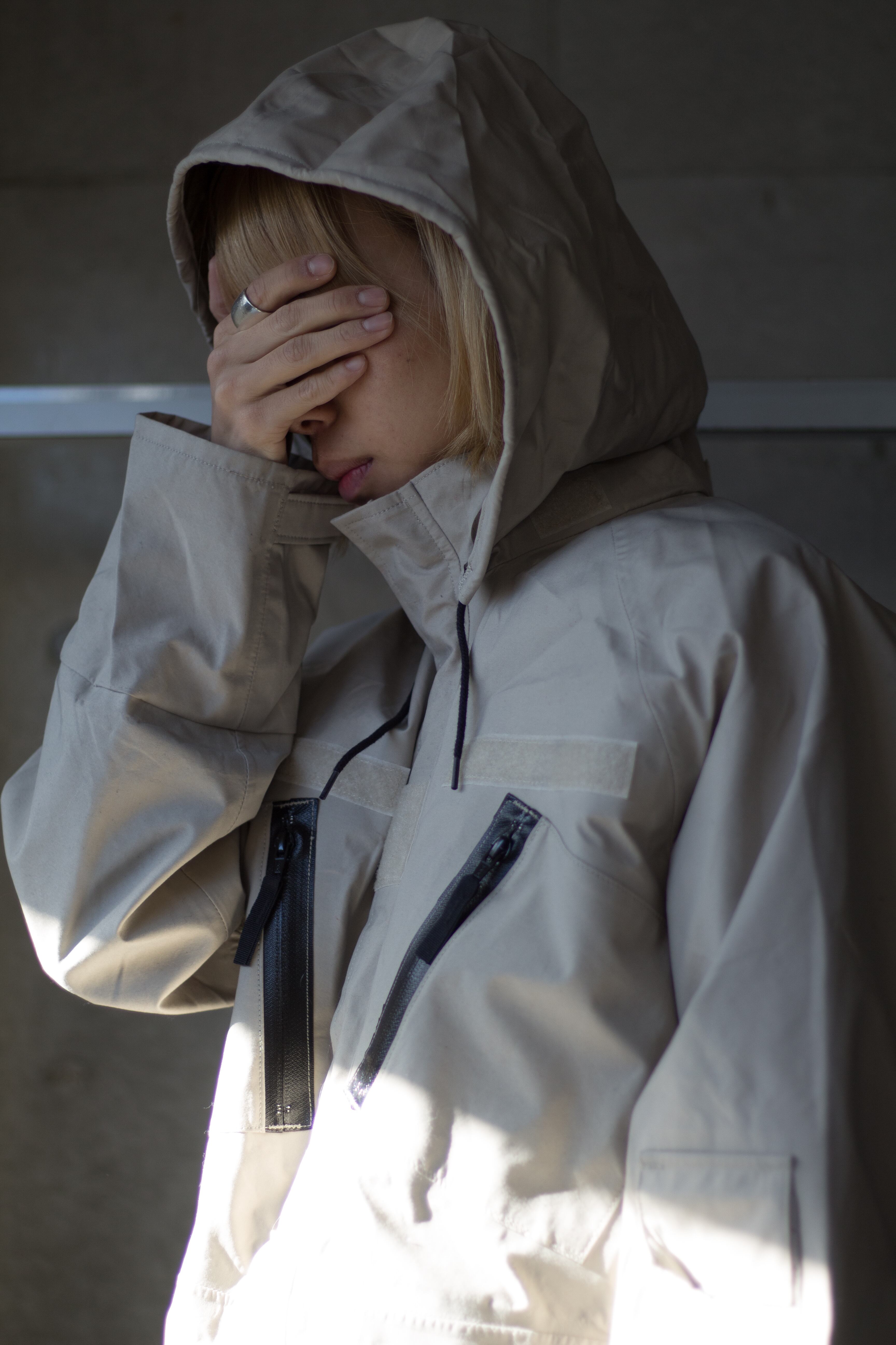 首周りの襟にフードが内蔵されており、色々な箇所にポケットも付いてます。ジップには止水ジップが採用されているため、ポケットの中のものをしっかりと守ってくれること間違いなし。