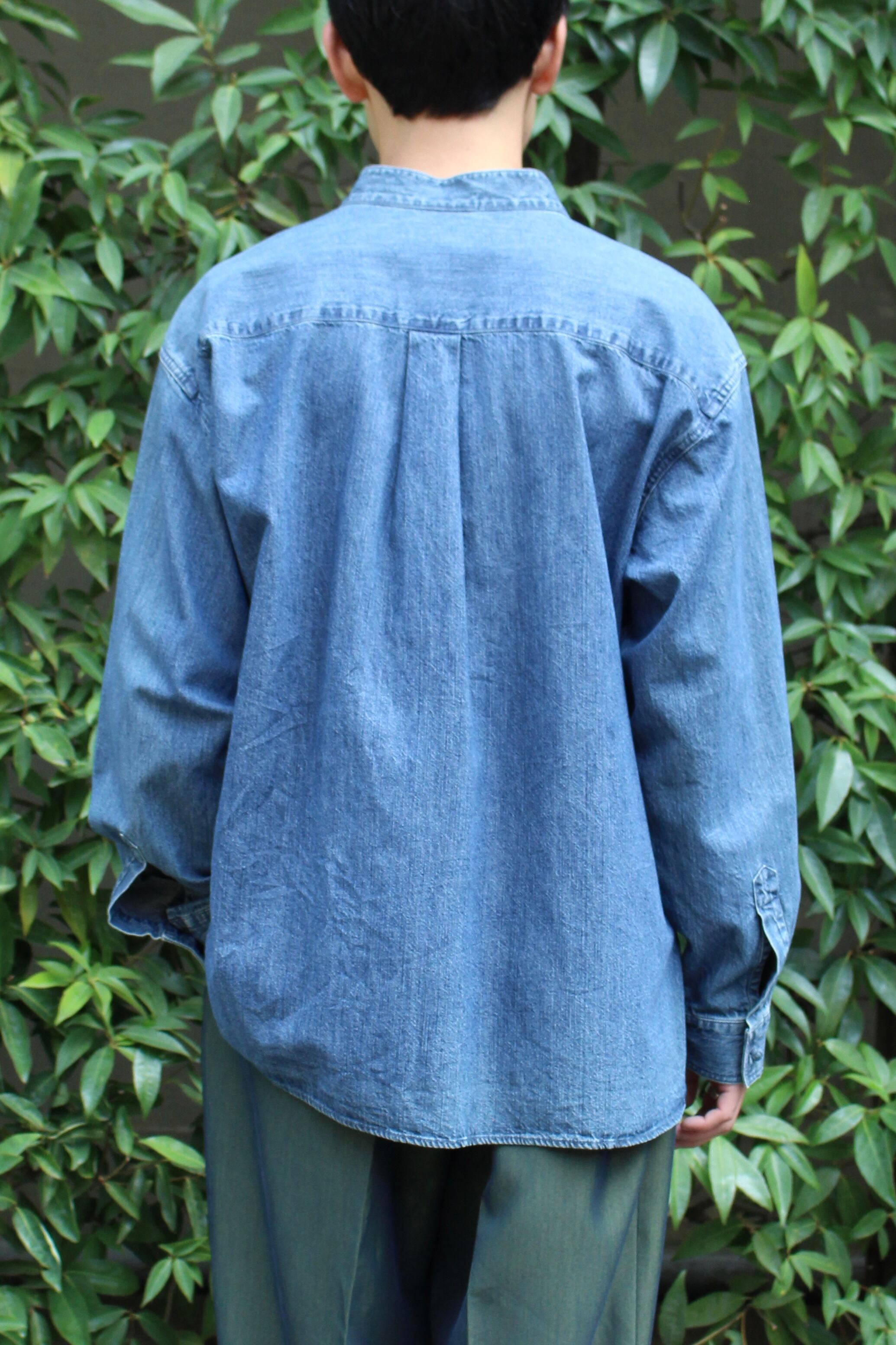 しっかりとVINTAGEな雰囲気漂うデニムファブリックにスタンドカラーにフロントチャイナボタン、刺繍やサテン地のアイテムが多い中こちらは日常的に着用しやすいかと