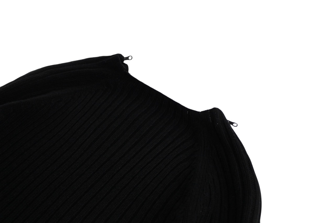 【COU】ribbed double zip sleeve round neck knit -6224-