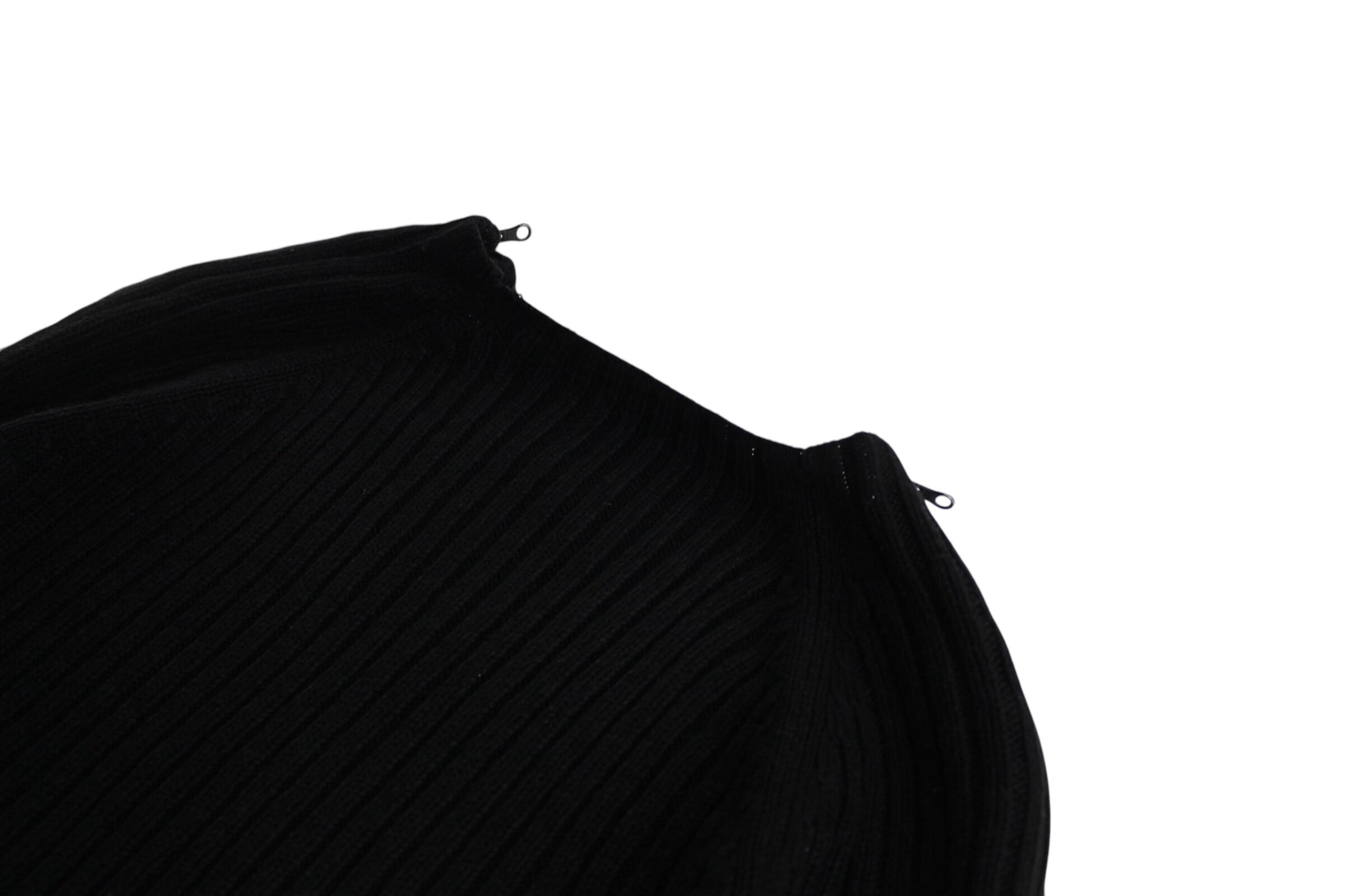ブラックに対するリブの立体感が重たさを消しつつ、デザイン性もありオールブラックコーデにも◎