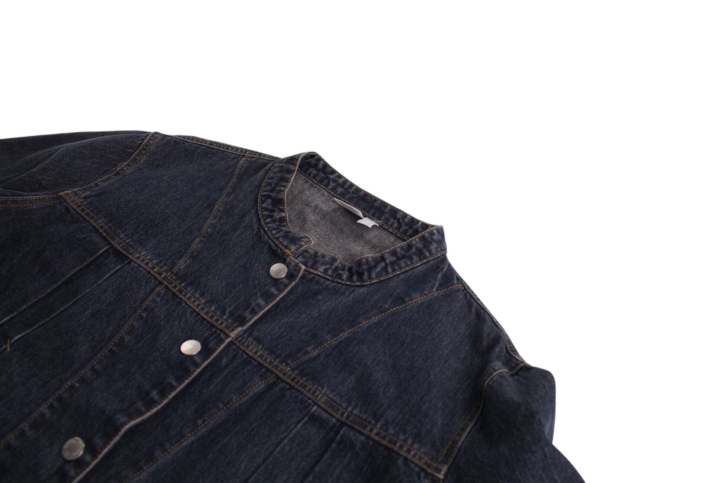 デニムの野暮ったさをマオカラーでバランスを取っているいい塩梅のジャケット。