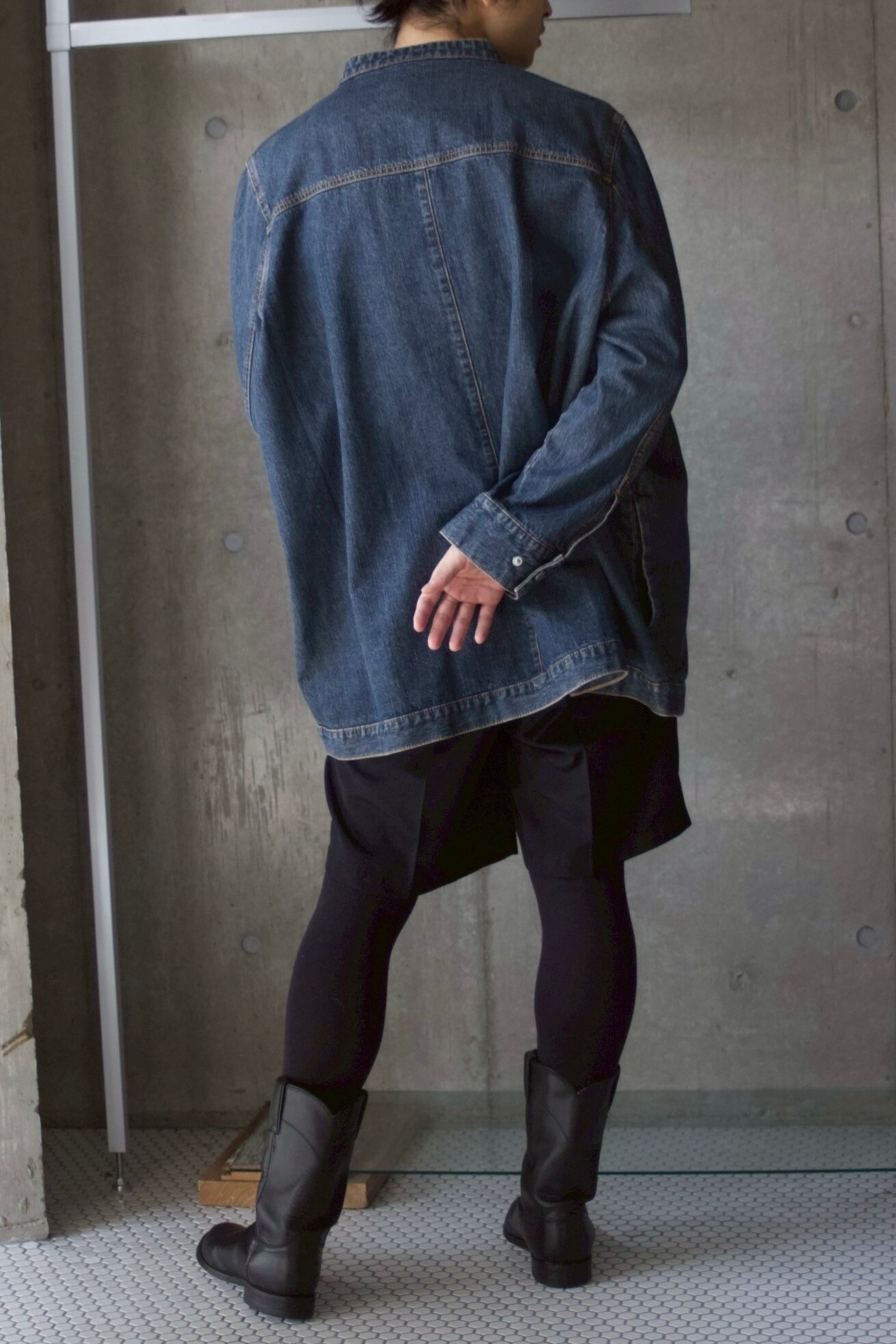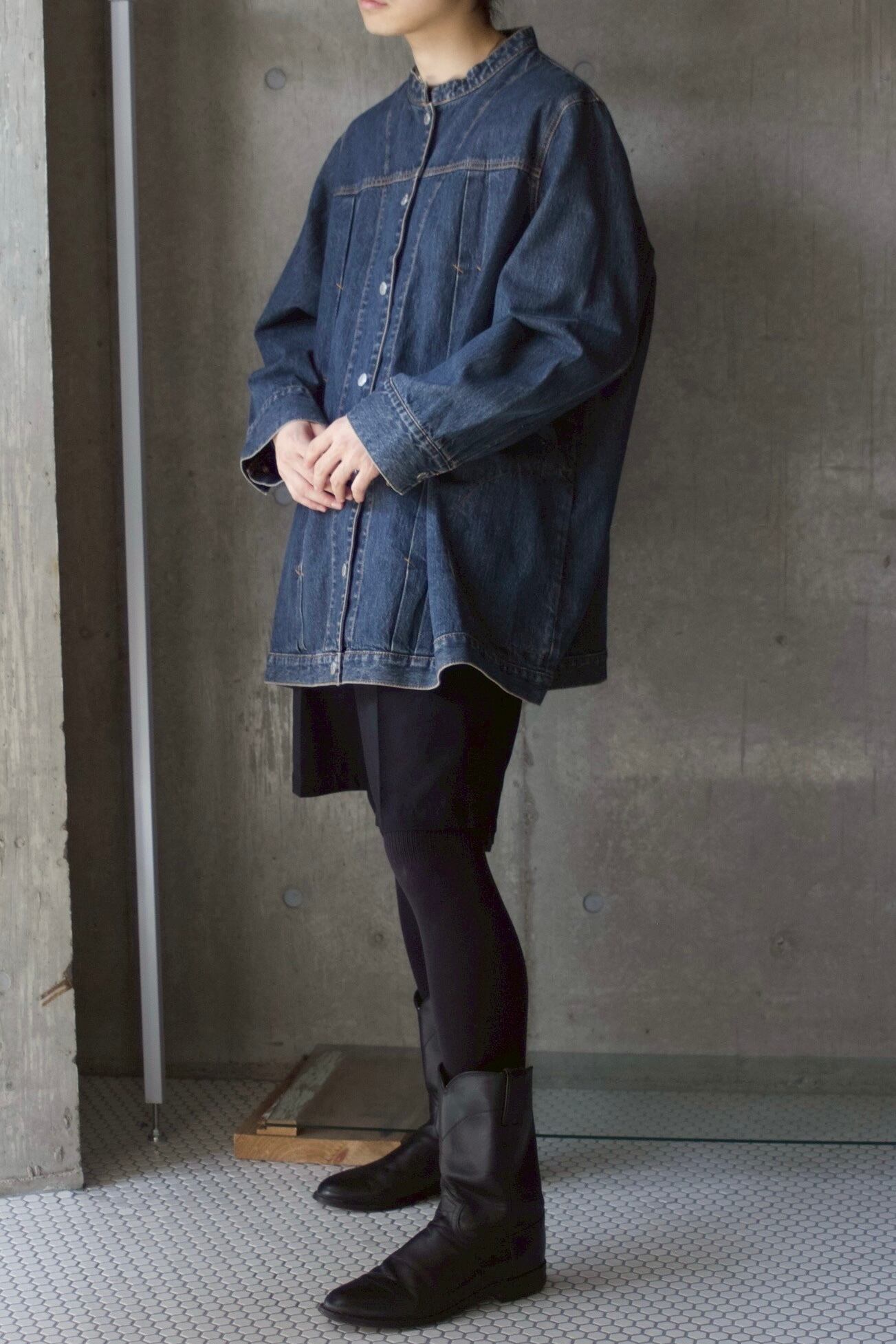 此方は、インディゴカラーで Levi's (リーバイス)のデニムジャケットのような、フロントプリーツデザインに肩から裾まで緩やかな曲線を描くフロントステッチが特徴的。