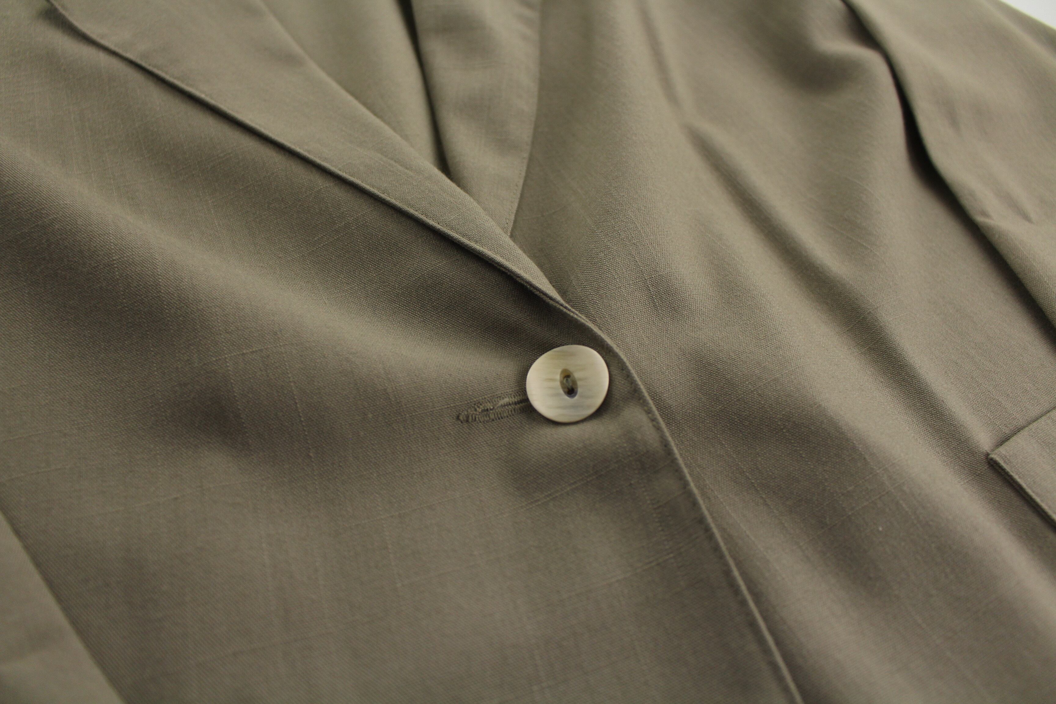シェルボタンライクなボタンを採用し、全体的な淡い抹茶色と相まって柔らかな自然を感じる雰囲気。