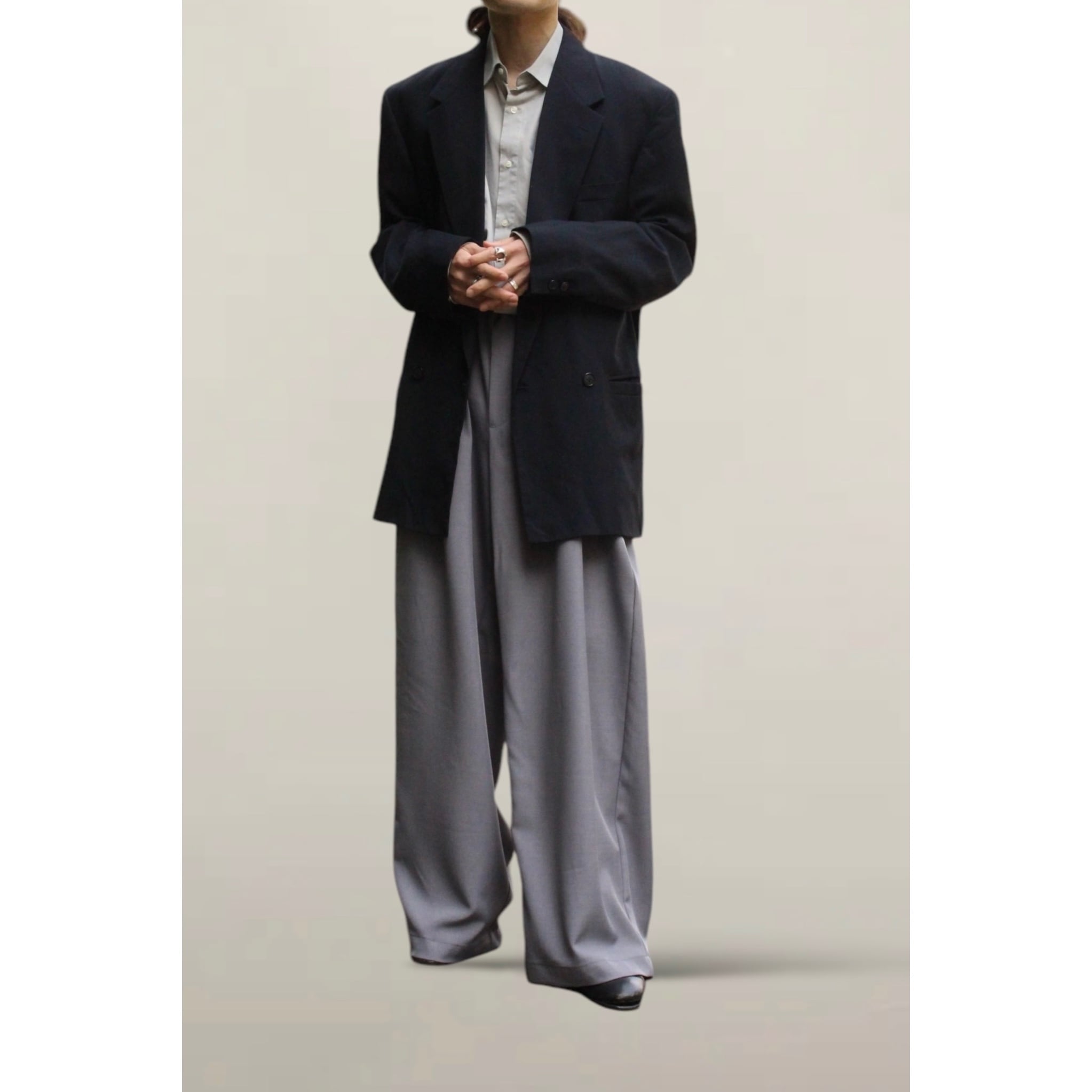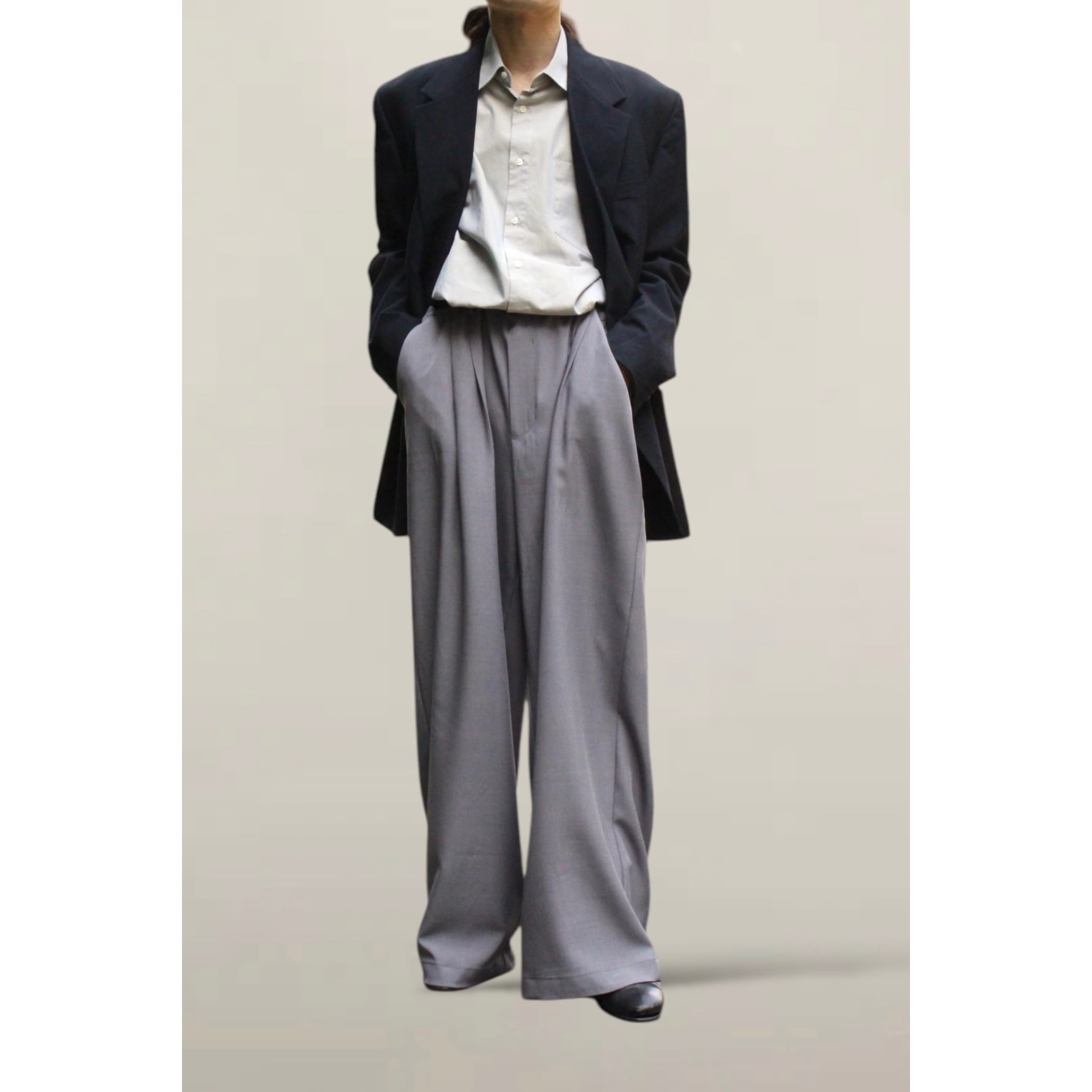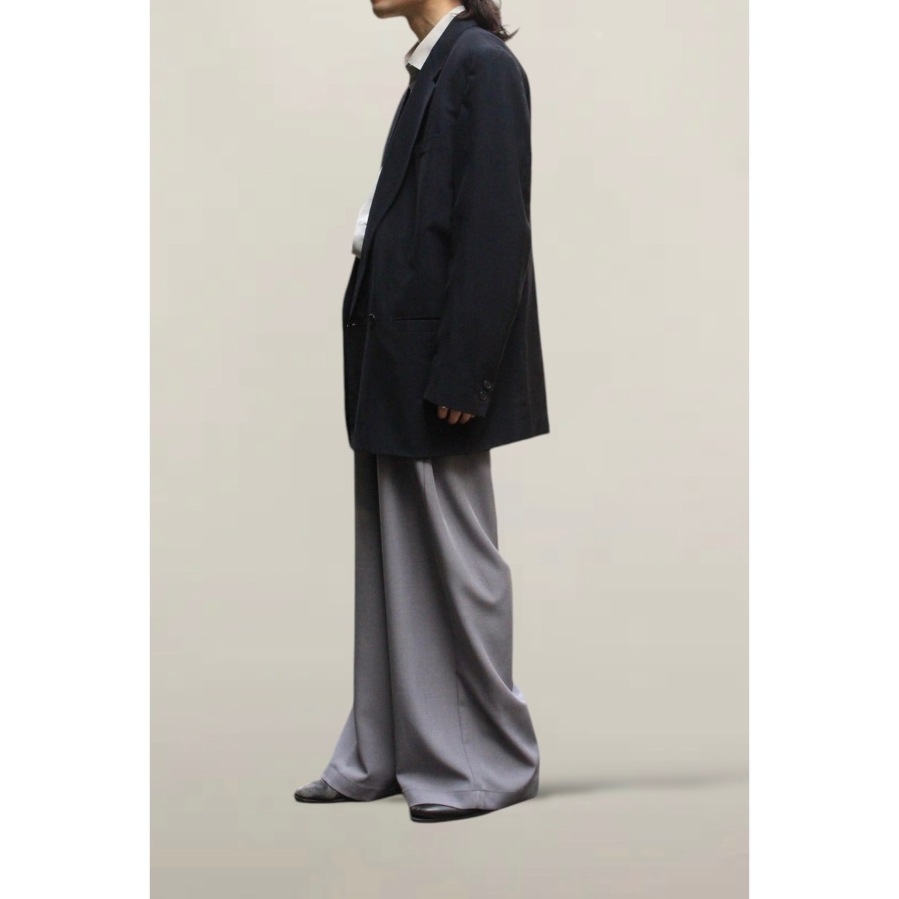 身幅の広さがあるボックスシルエットなので普段着のスタイリングにも、綺麗なシーンにも組み込めるます。