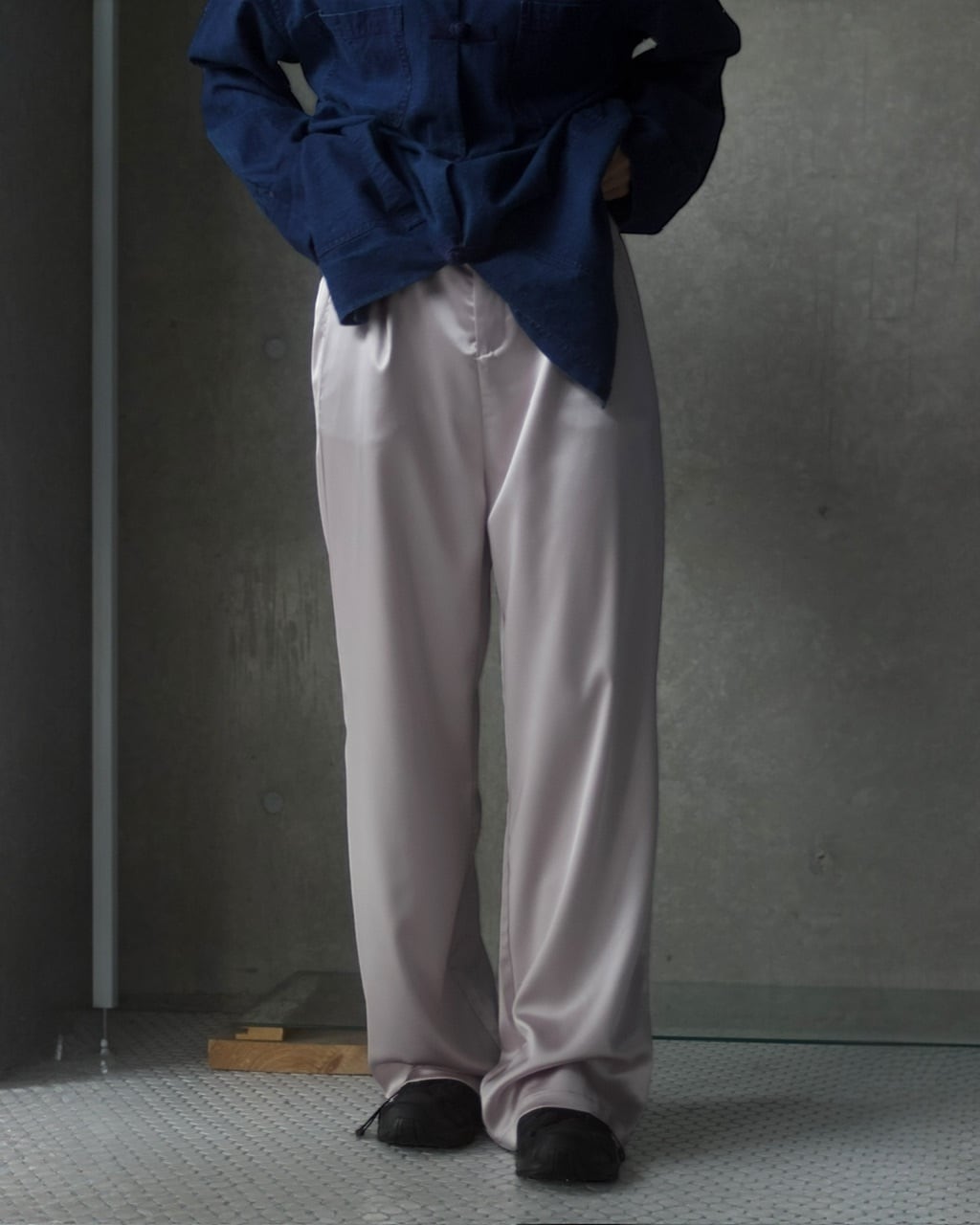 【MAKE MY DAY】"Sakura" 1-tuck wide straight satin easy slacks -0331-