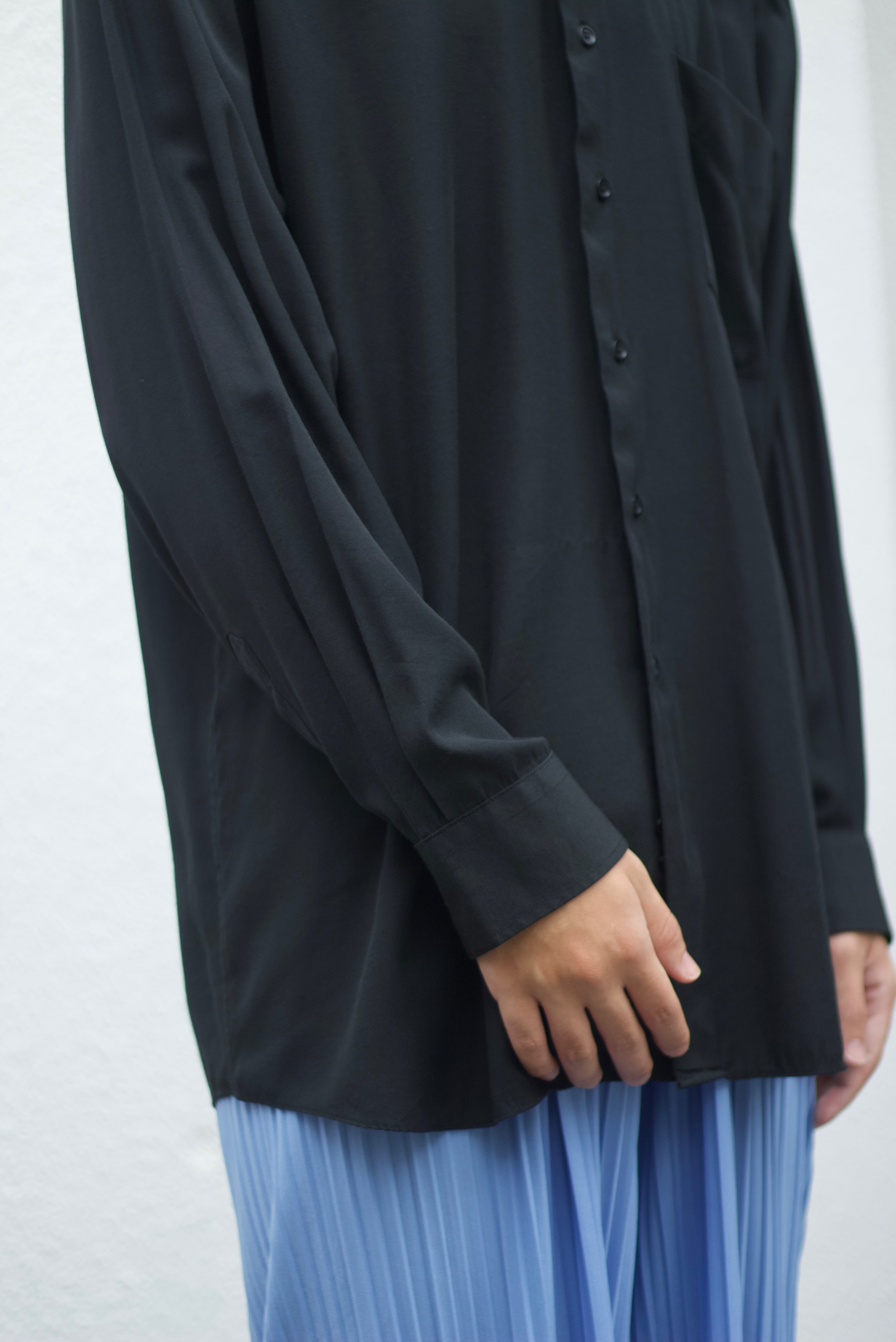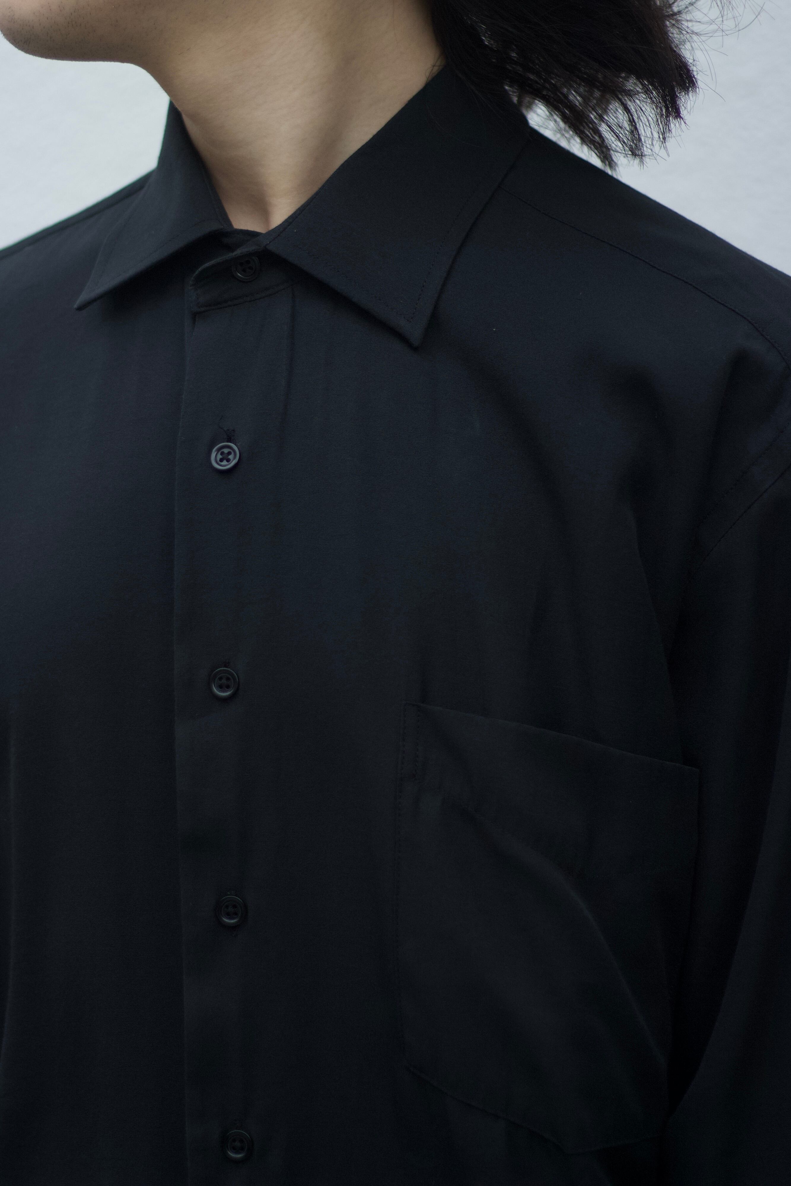 古着のシャツといえば基本的にビジネスシーンで使われておりパリっとした質感のものが多い中こちらはとろっとろの素材感。しかもブラックなんて間違いない。