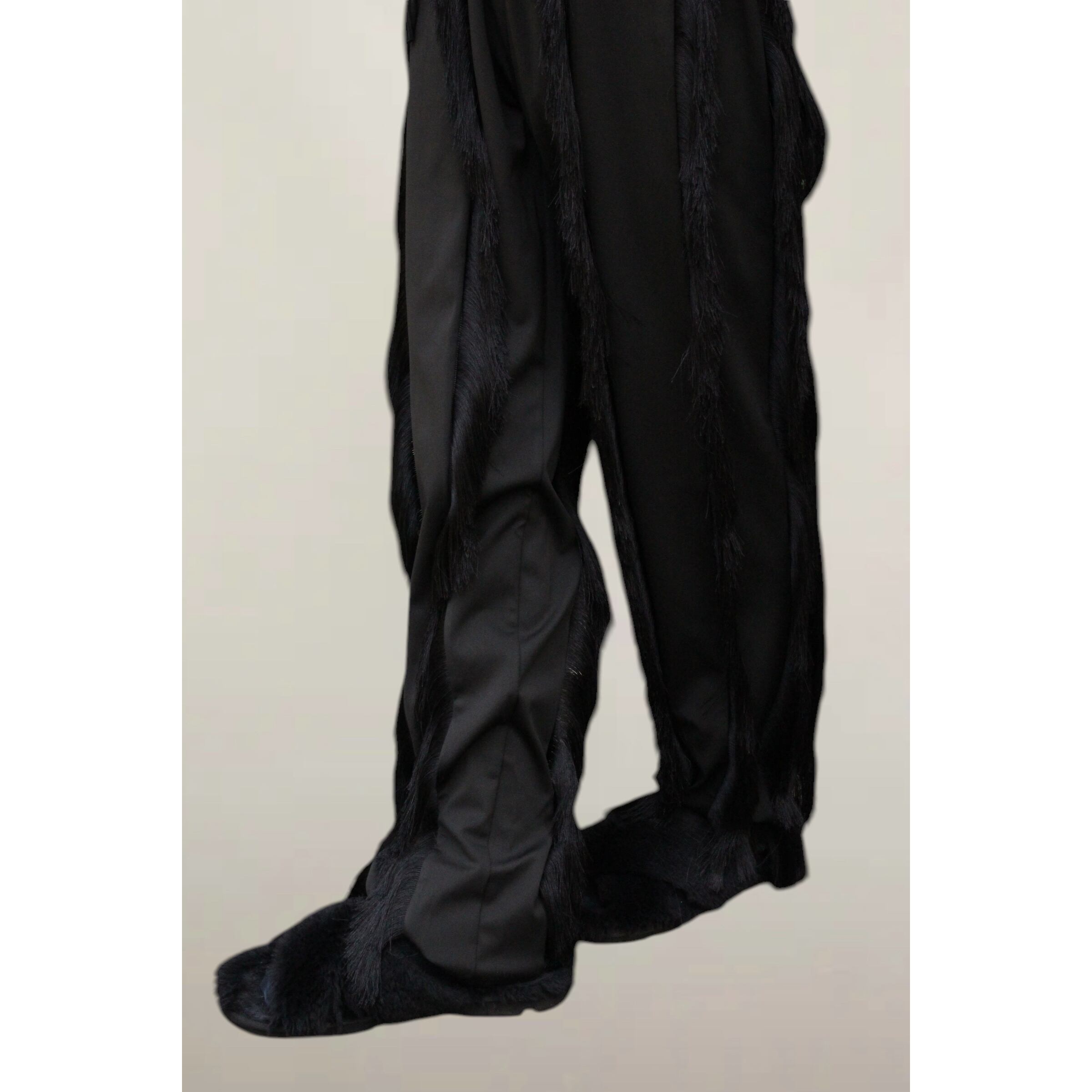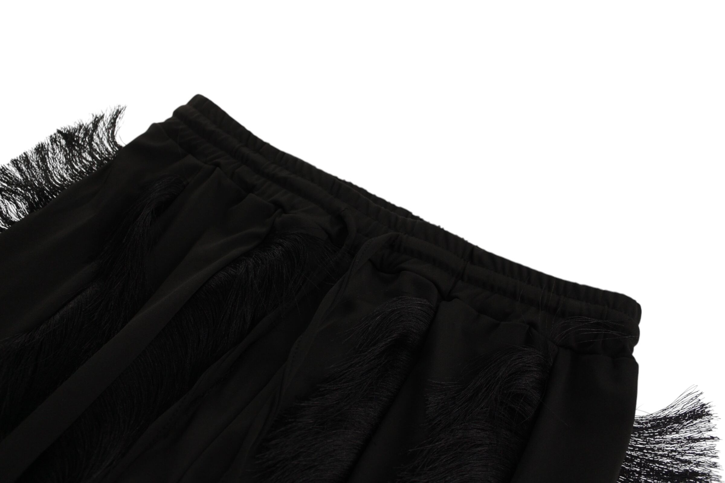 ポリファブリックにストライプのようなフリンジ。オールブラックでモードな印象漂う逸品です☺︎