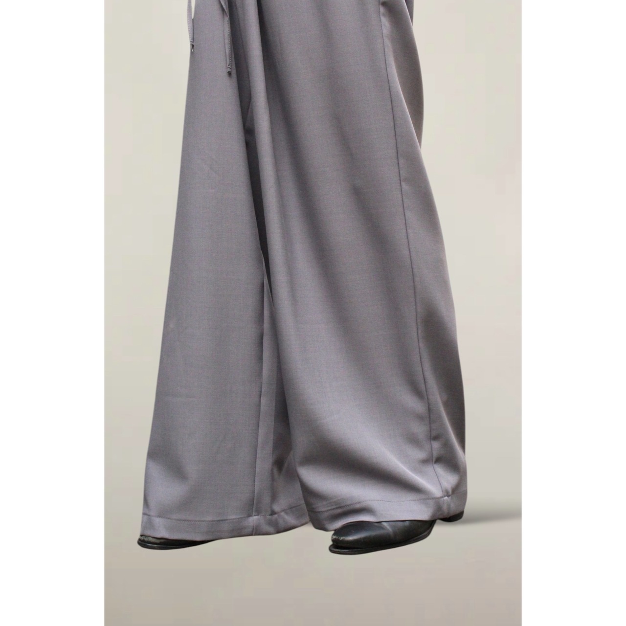 ウエストの後ろ部分がゴムになっていて、ベルトループもついているので、スラックスとイージーパンツの中間のようなパンツです。