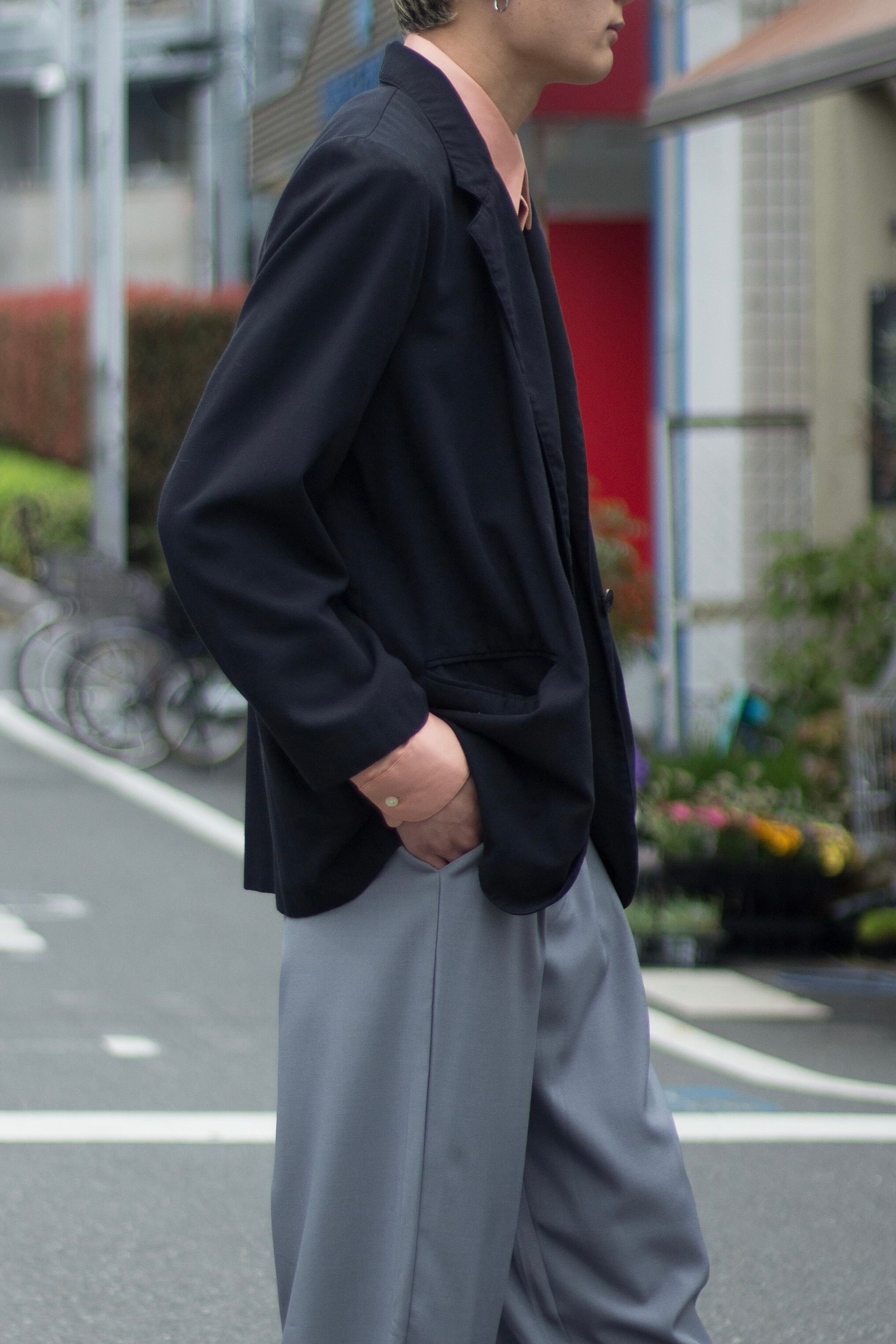 中に仕込むものはシャツはもちろんTシャツなどでもキマる。夏にはタンクトップで◎自由度が高い所もこのジャケットの魅力。