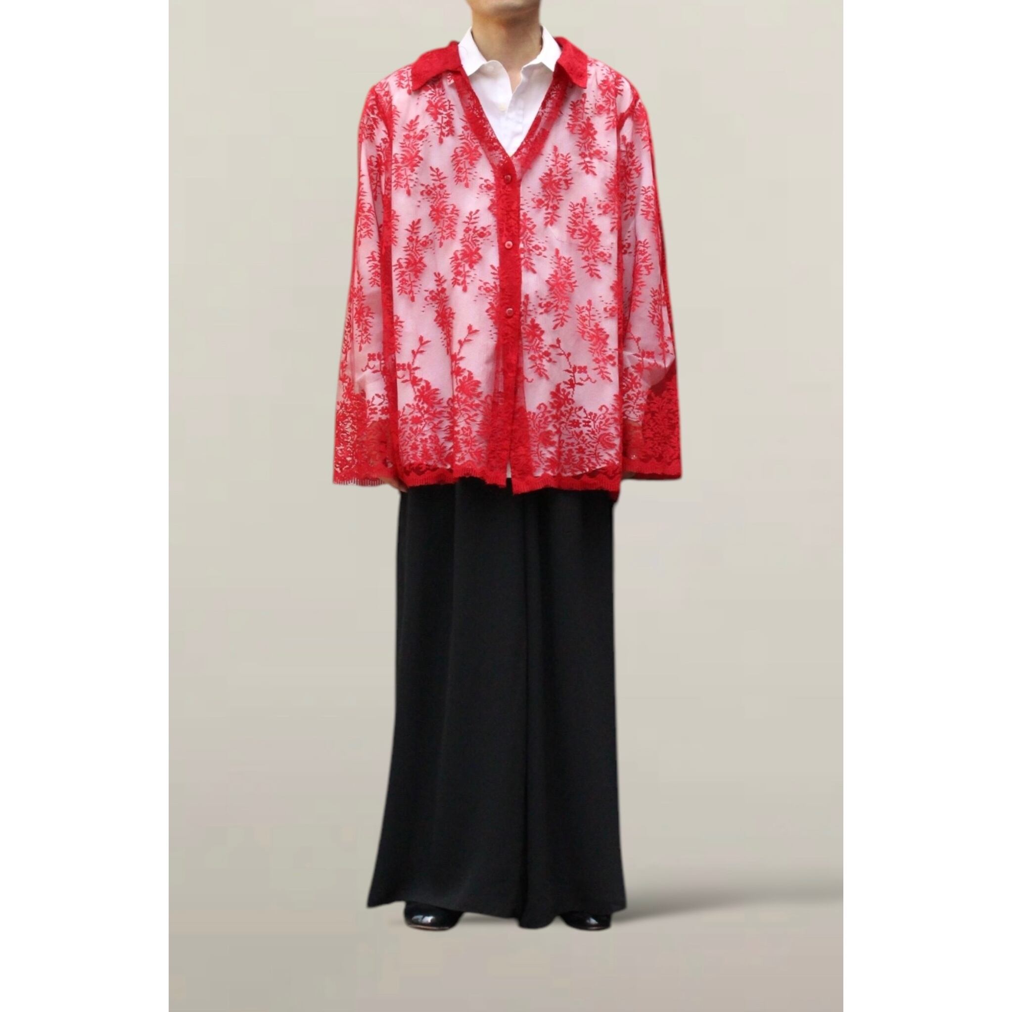 着画ではシャツの上から合わせているのですがレース部分が花のような柄で透け感も充分です☺︎