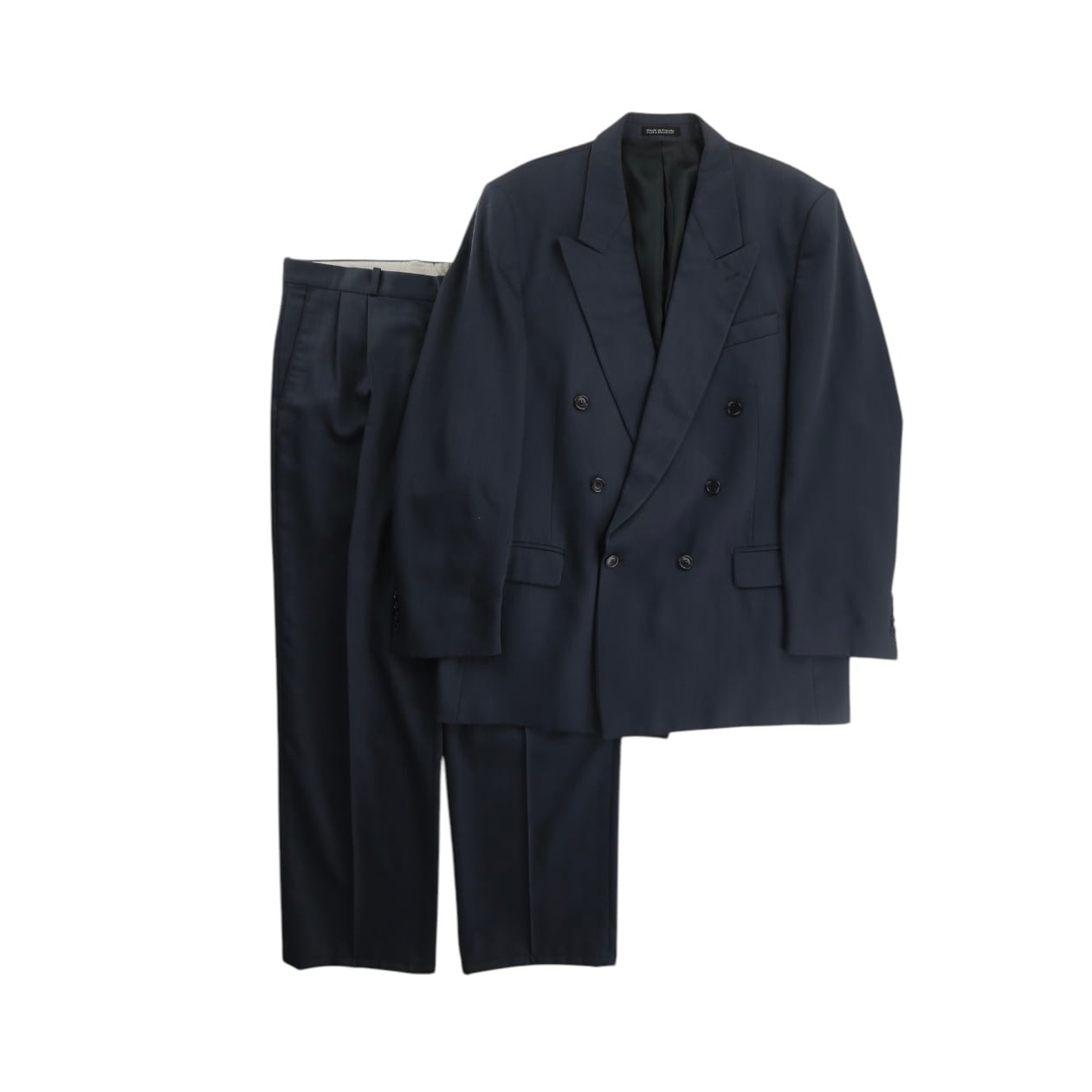 ジャケットはフォーマルになり過ぎないゆとりのあるサイズ感に、ピークドラペルのダブル仕様。