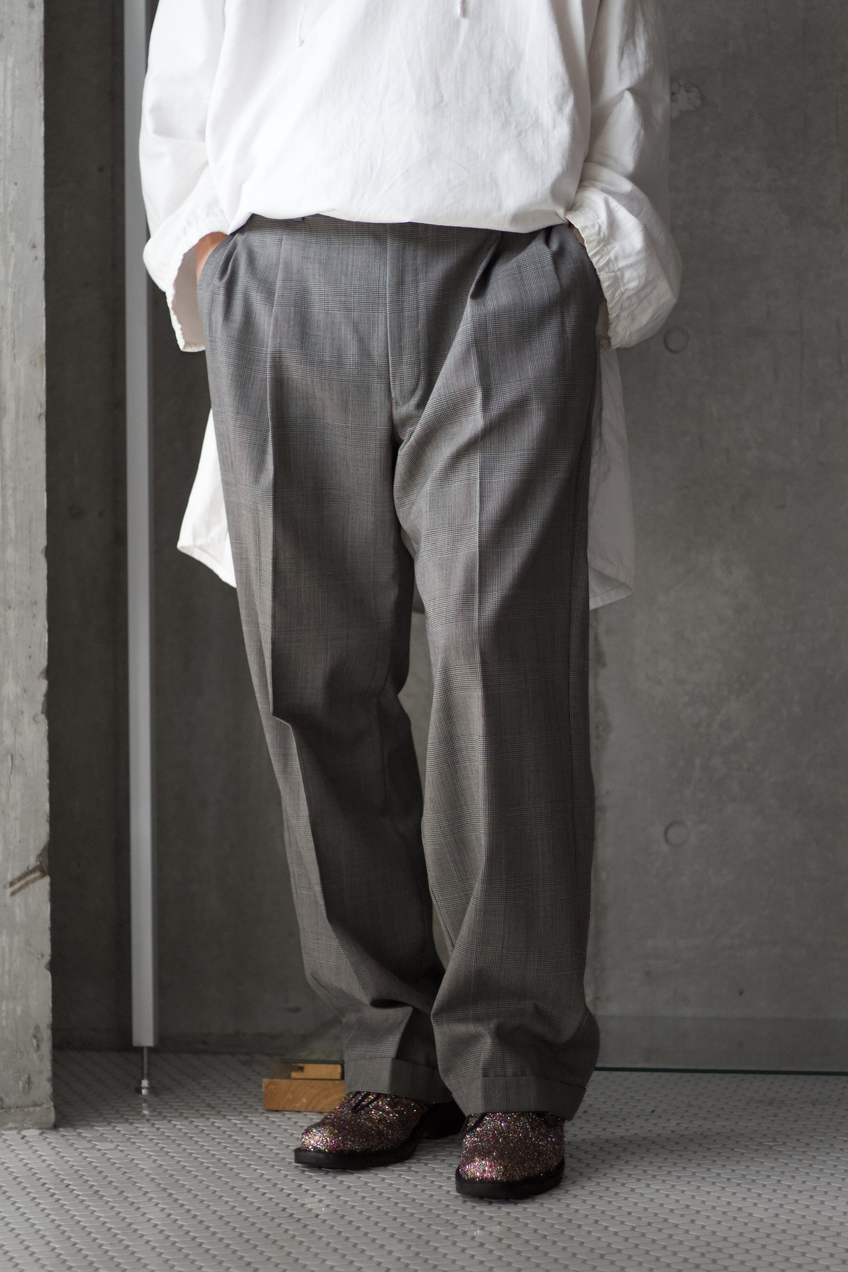 クラシカルなチェック柄に反してズドンと落ちるワイドシルエット!