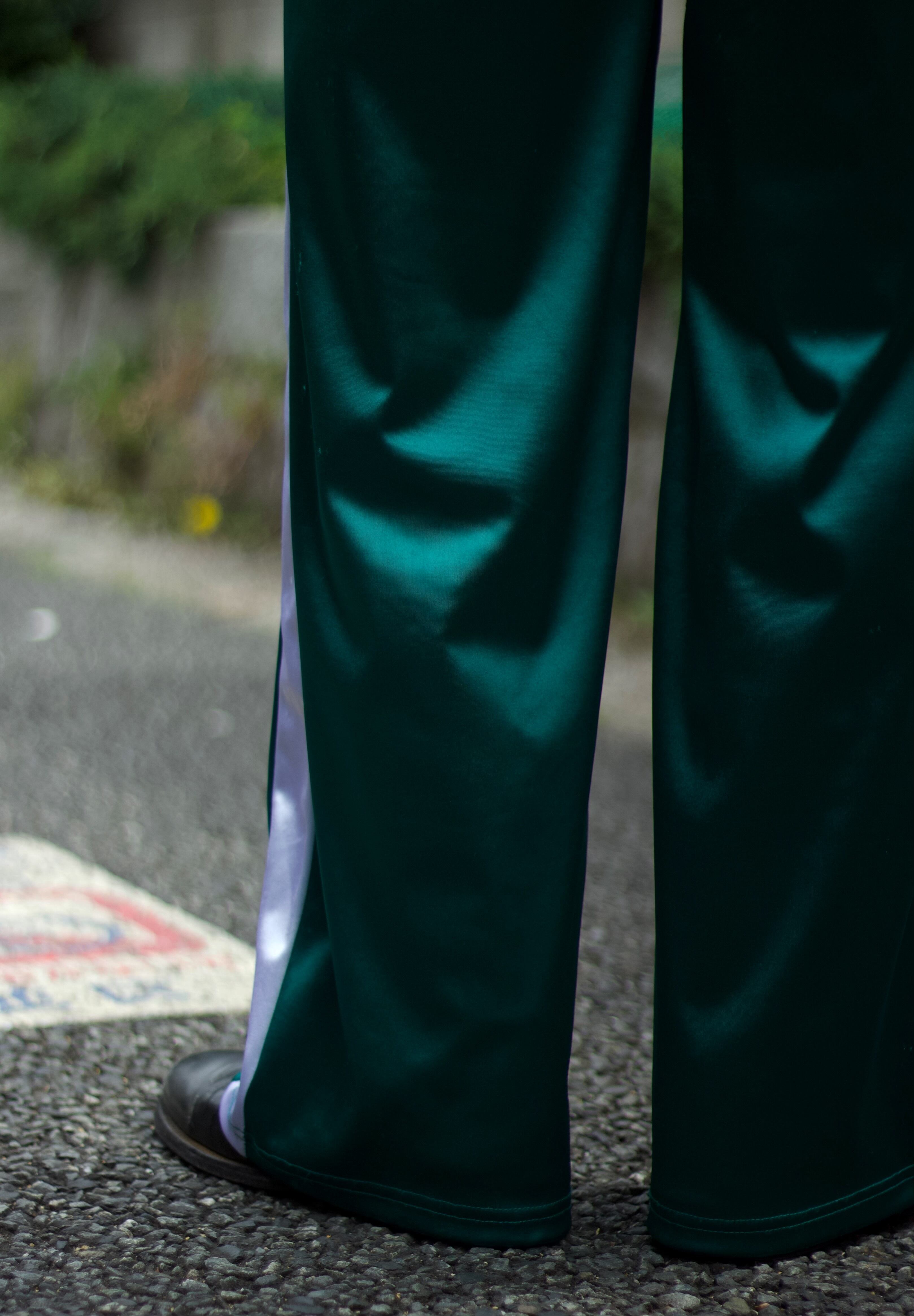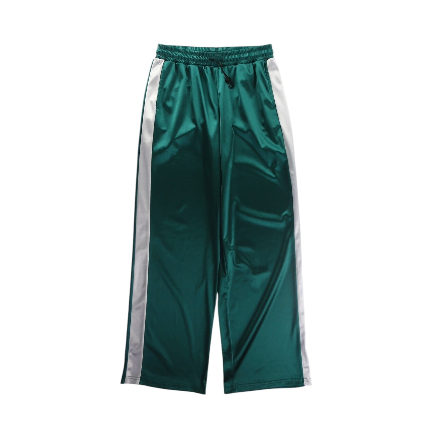 グリーンのサテンジャージートラックパンツ