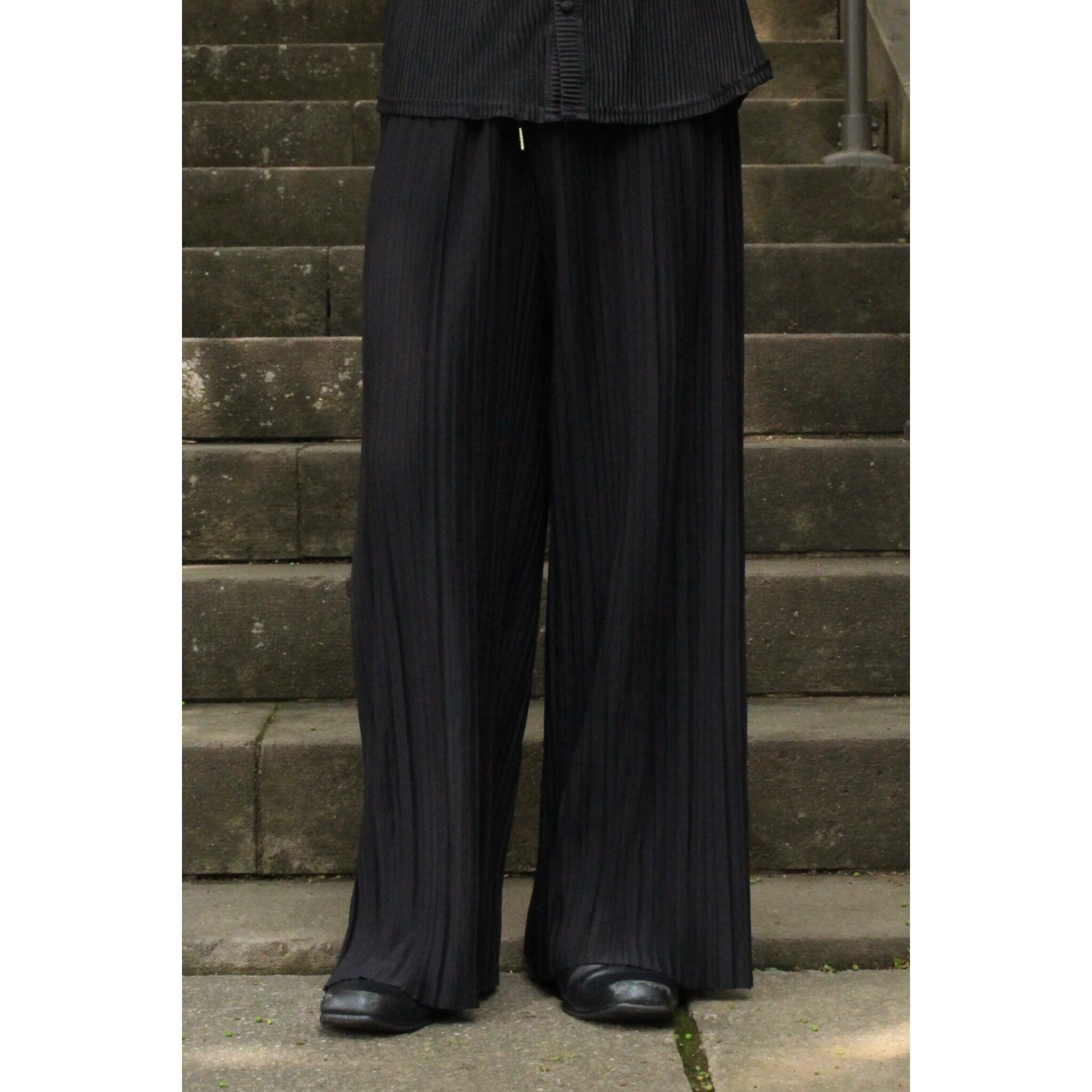 ブラックのドローコード付きプリーツパンツです◎