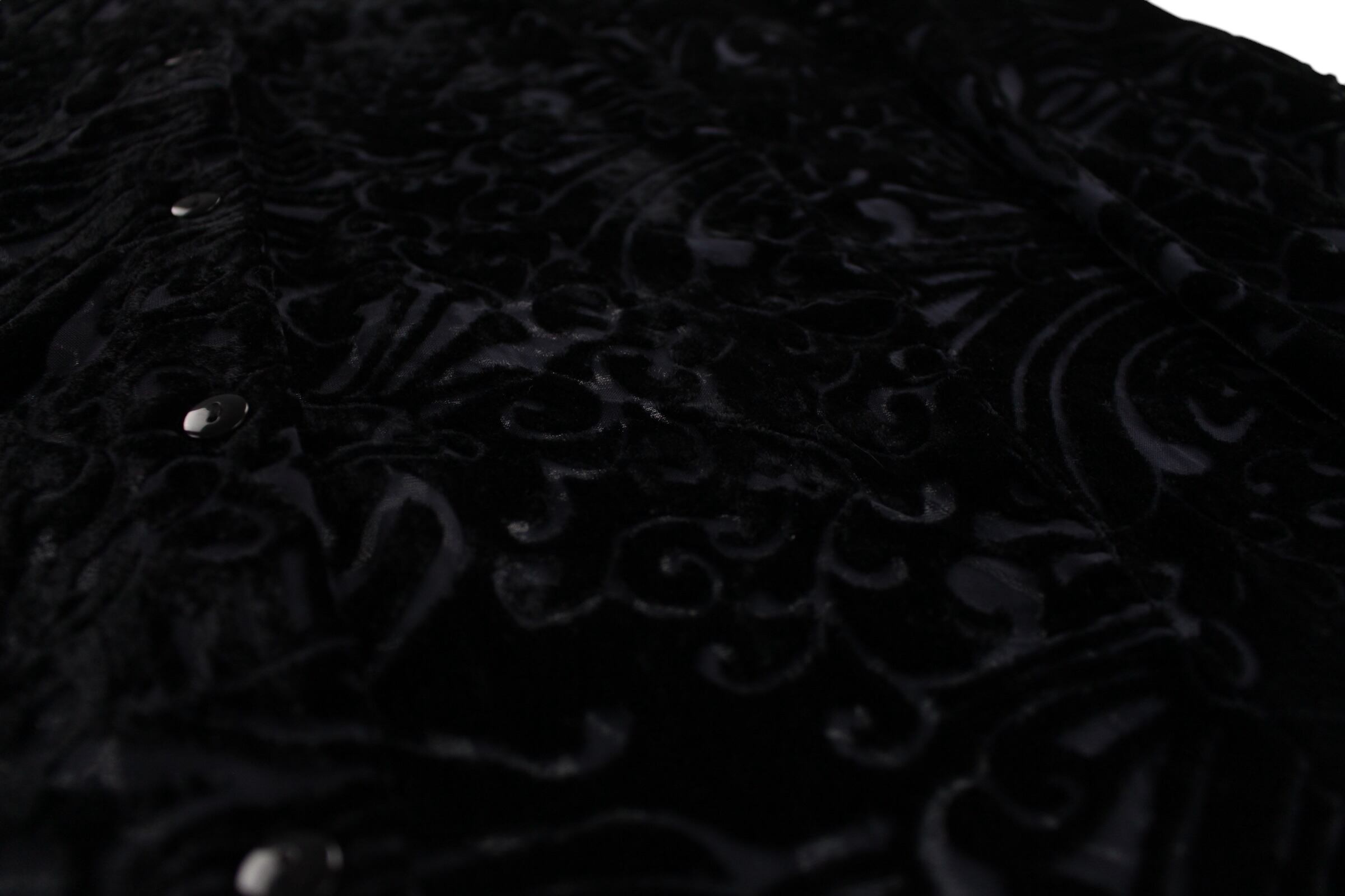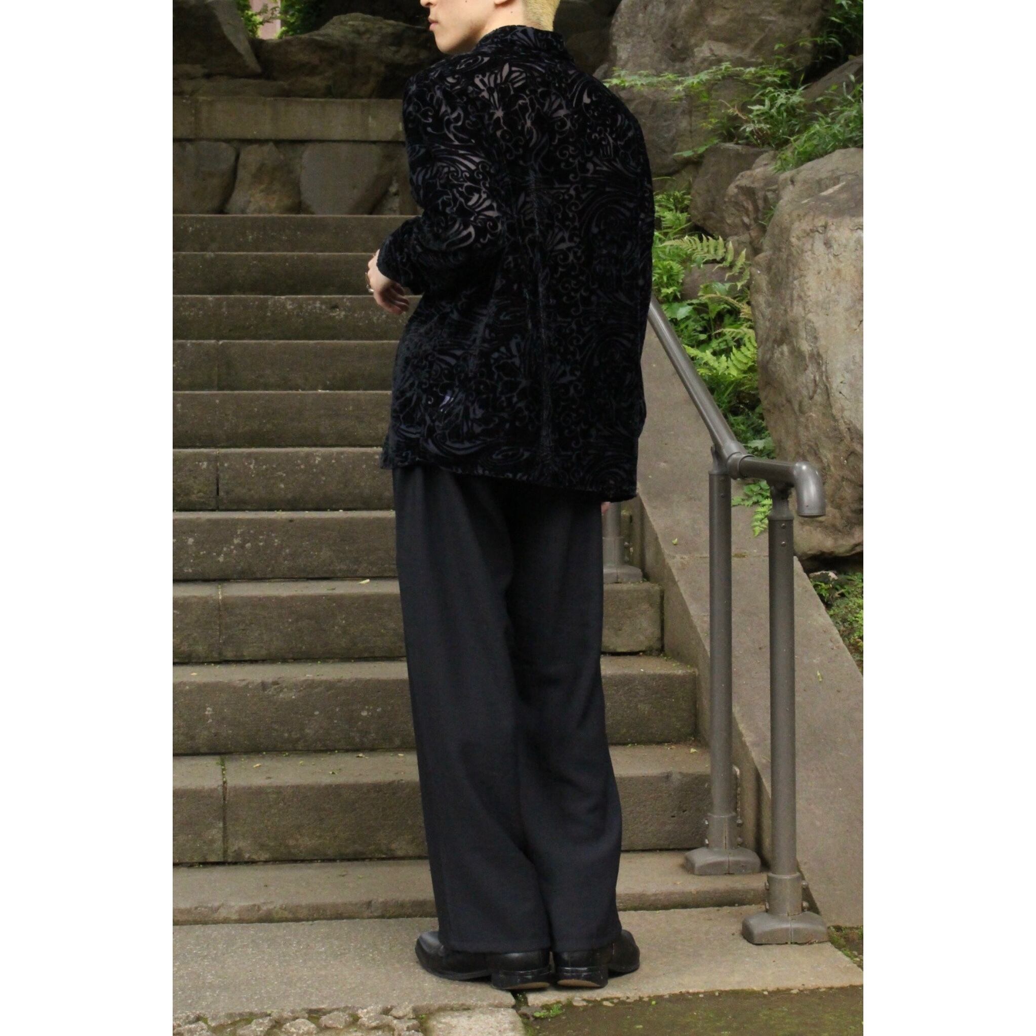 非常に薄いシアーにベロアとの合わせがとても良くて、生地の厚みが違う分、より立体的なデザインを楽しめて、尚且つ、シアー部分に肌やインナーが入る事で毎回違う雰囲気を味わえる飽きのこない一着なんです◎