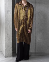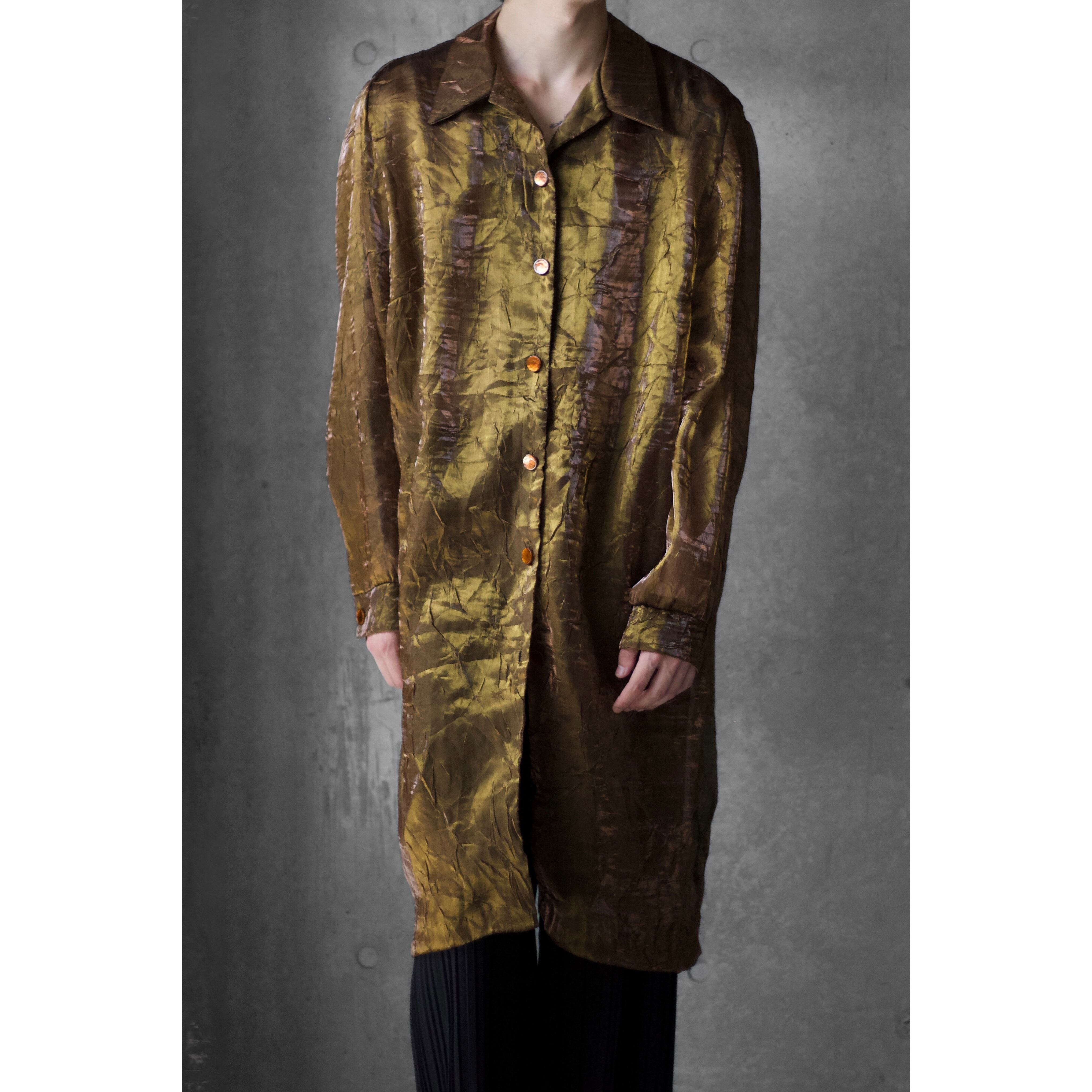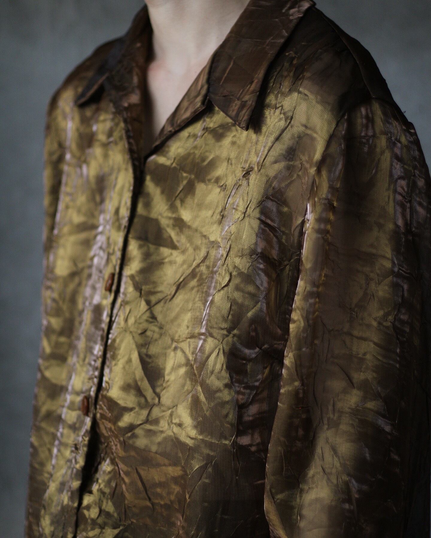 【COUOTSU】1980s vintage bronze satin wrinkle×sheer long shirt -2077-