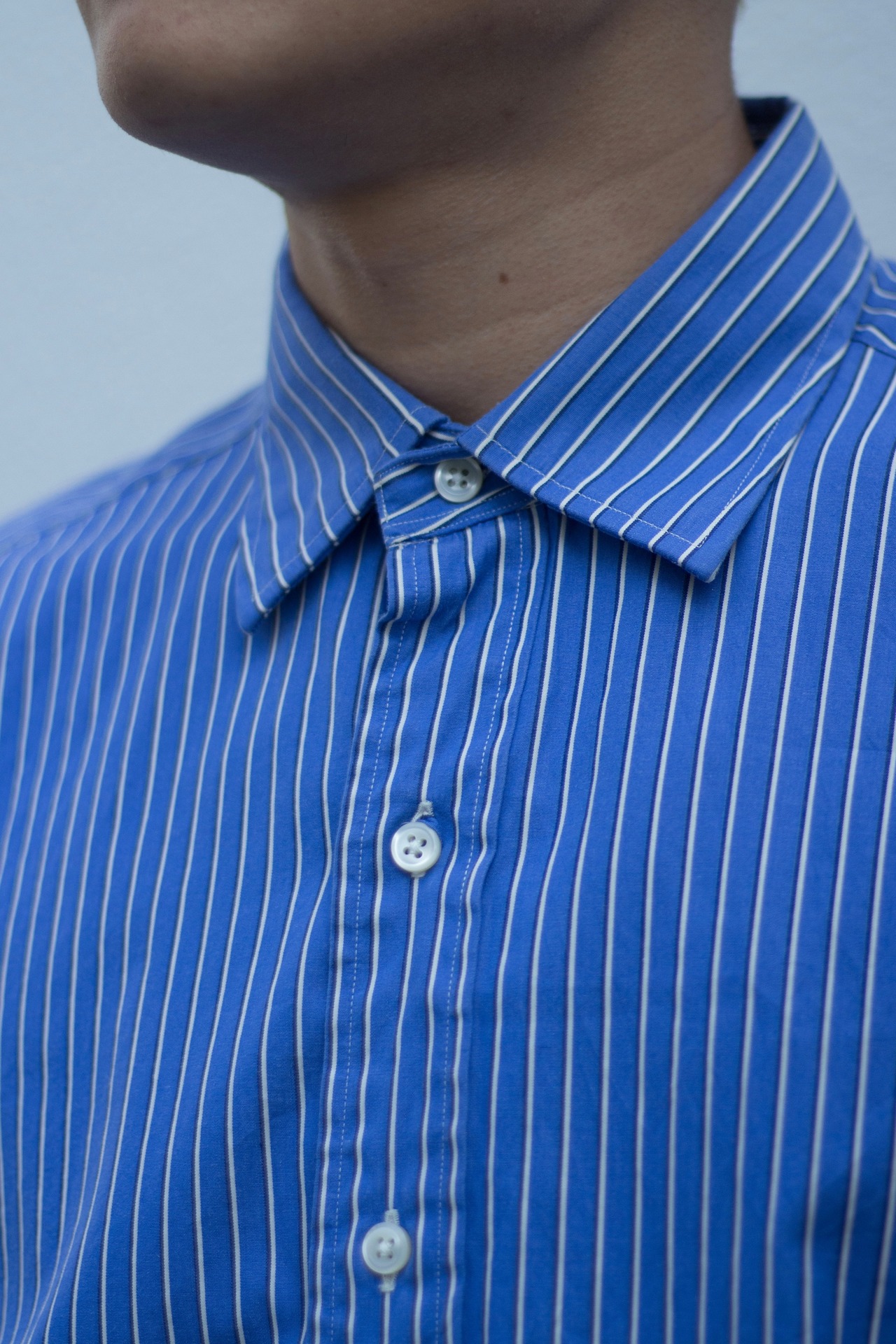 ブルー×ホワイトにネイビーのマルチストライプデザイン。特筆すべきはポニーロゴがつかない大人なラルフシャツ。
