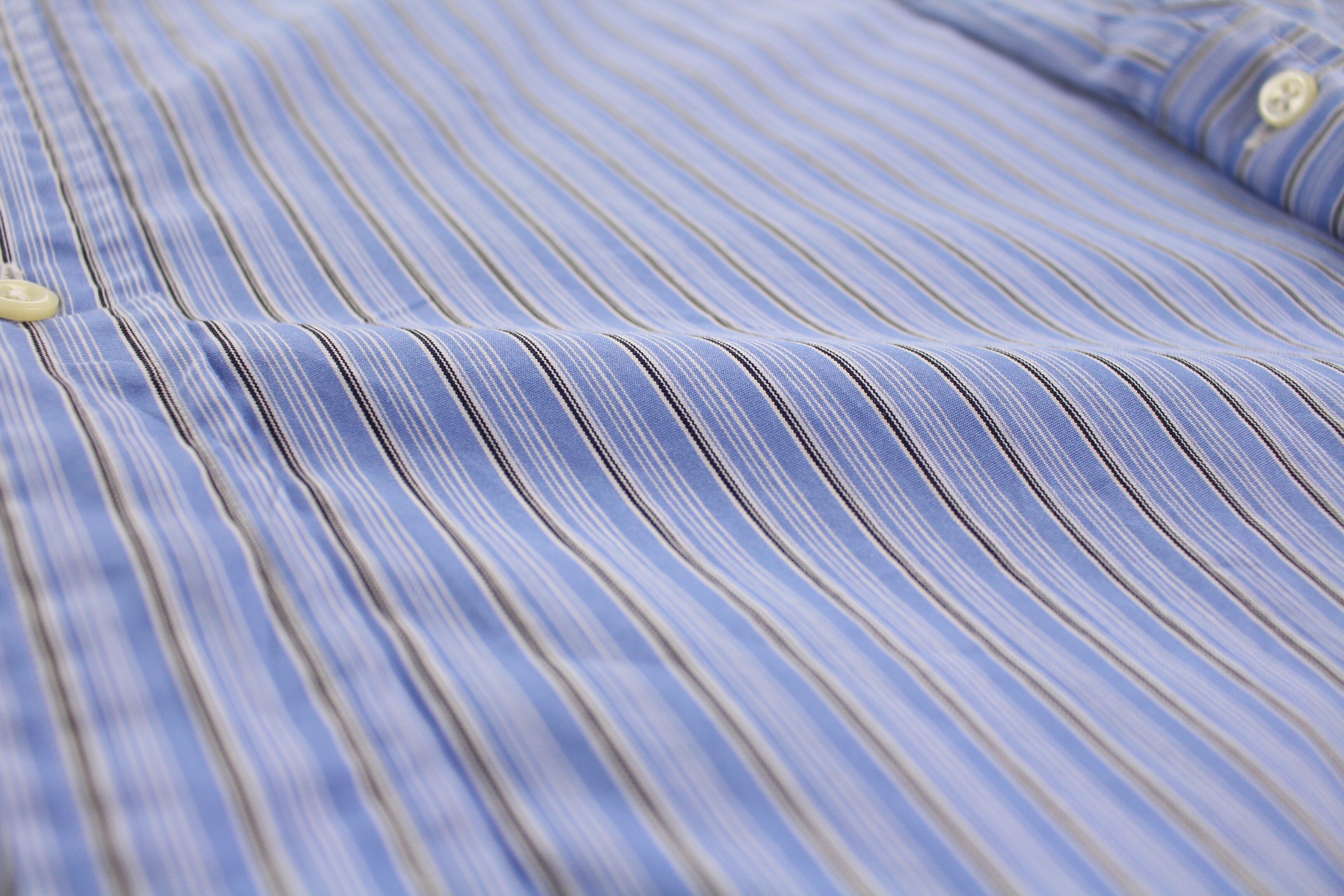 ライトブルー×ホワイトにブラックのマルチストライプデザイン。特筆すべきはポニーロゴがつかない大人なラルフシャツ。