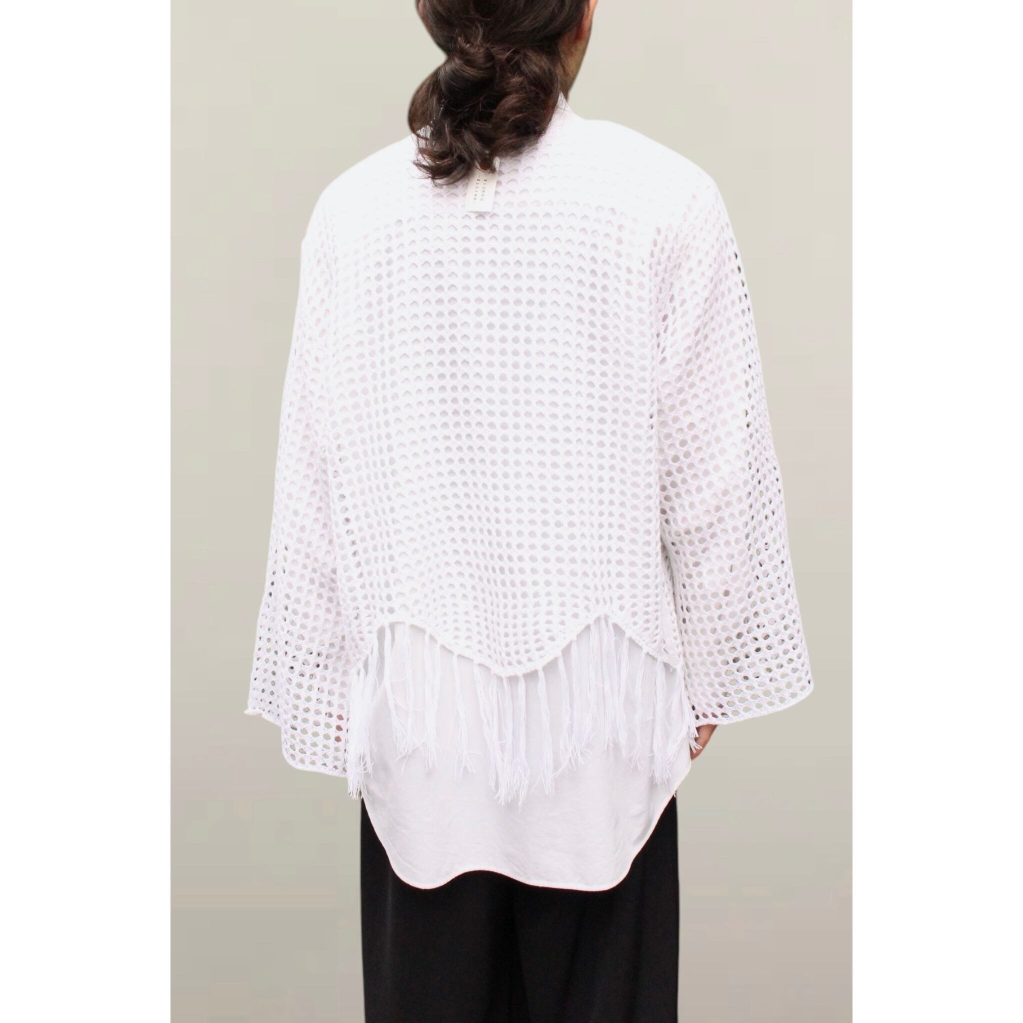 裾を見ると直線ではなく波のある特徴的なバランスにフリンジがついたデザイン。