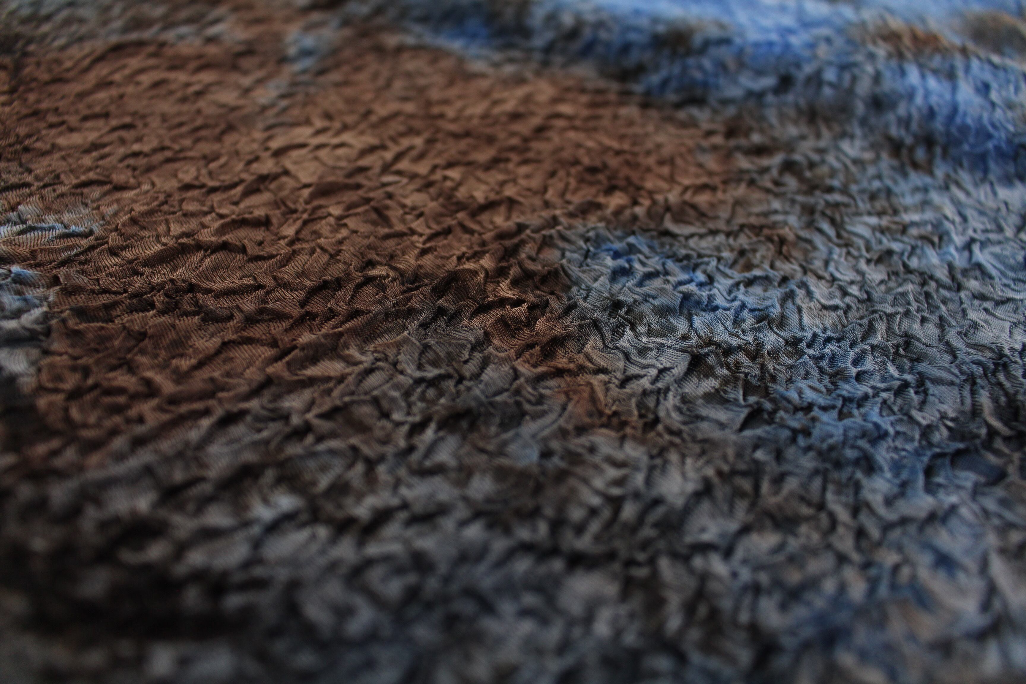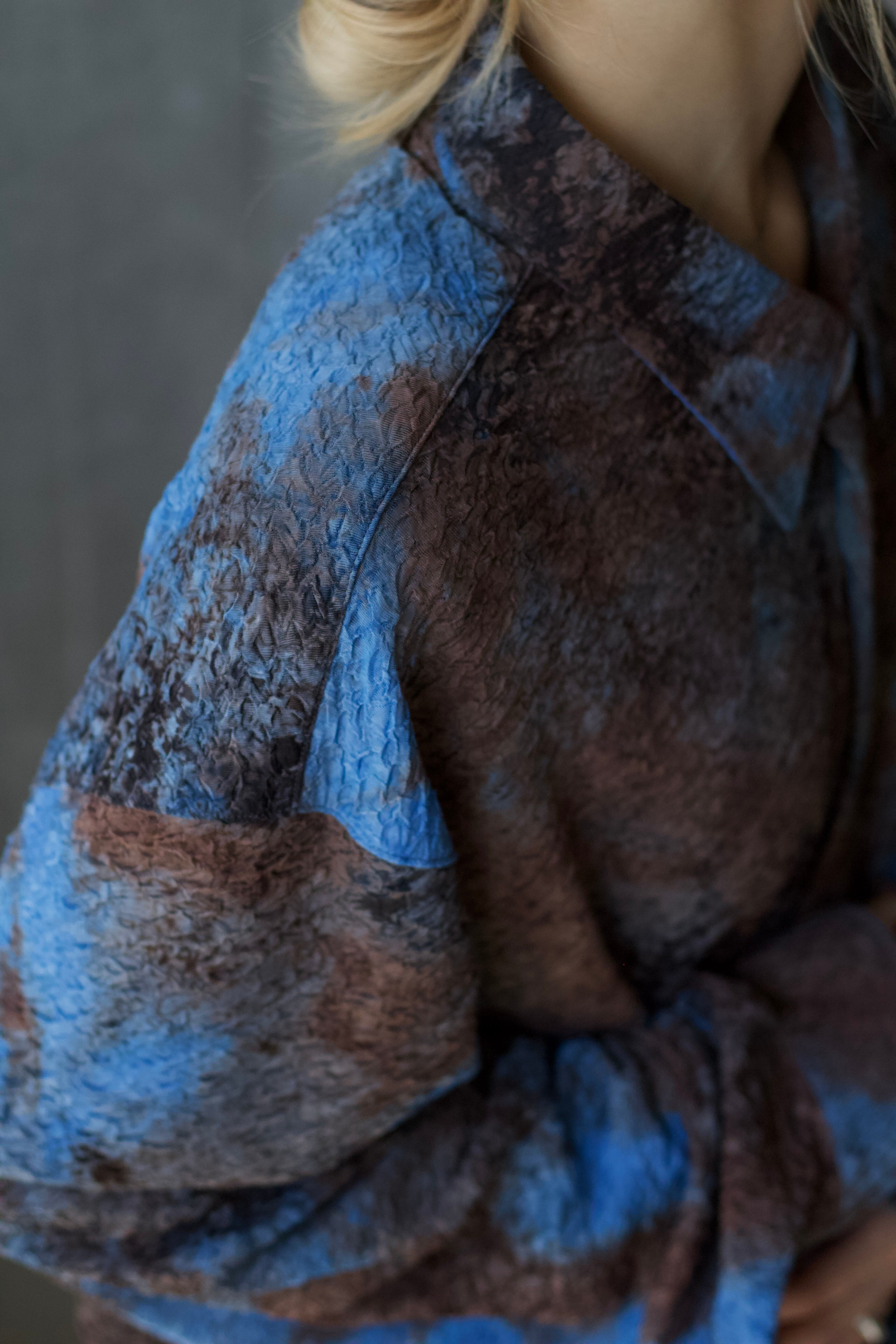 アブストラクト(抽象的)な柄が印象的で、深みのあるブラウンとブルーのカラーリングがめちゃくちゃ良いんです。