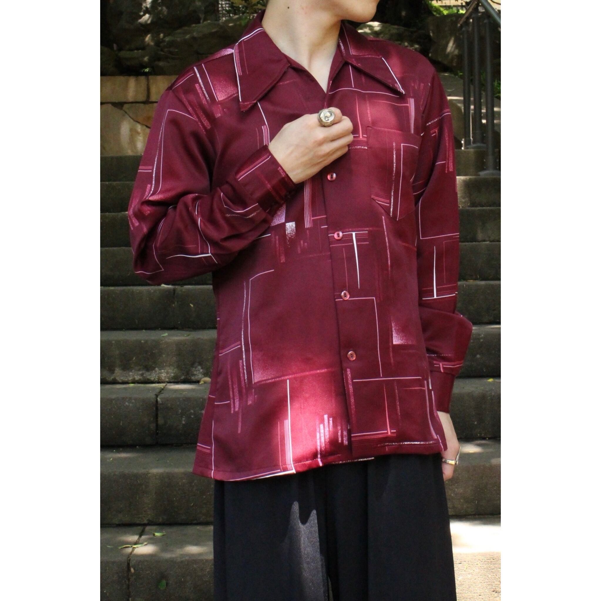70’s ジオメトリックパターンオープンカラーシャツ。