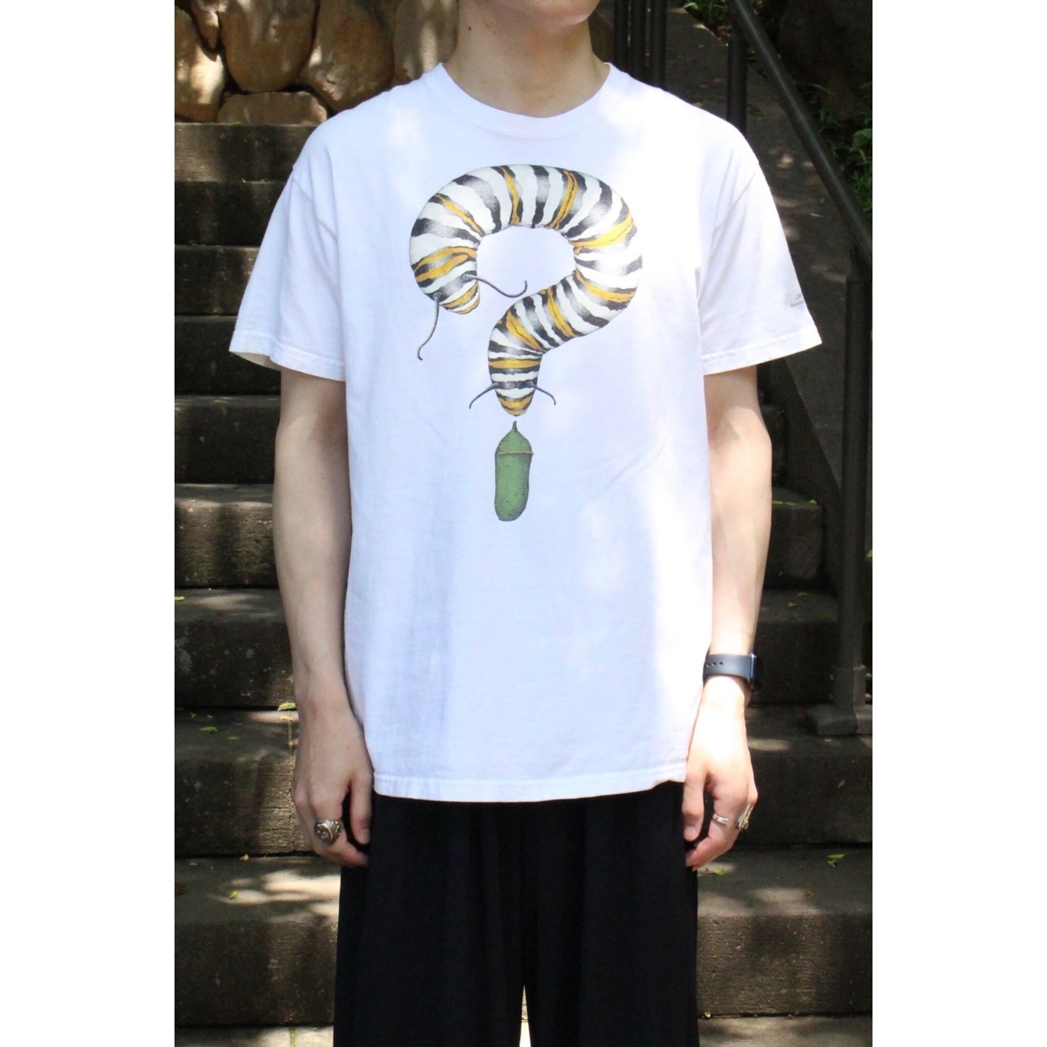 前と後ろで幼虫から成虫へ成長していく自然の摂理を描いたアート。