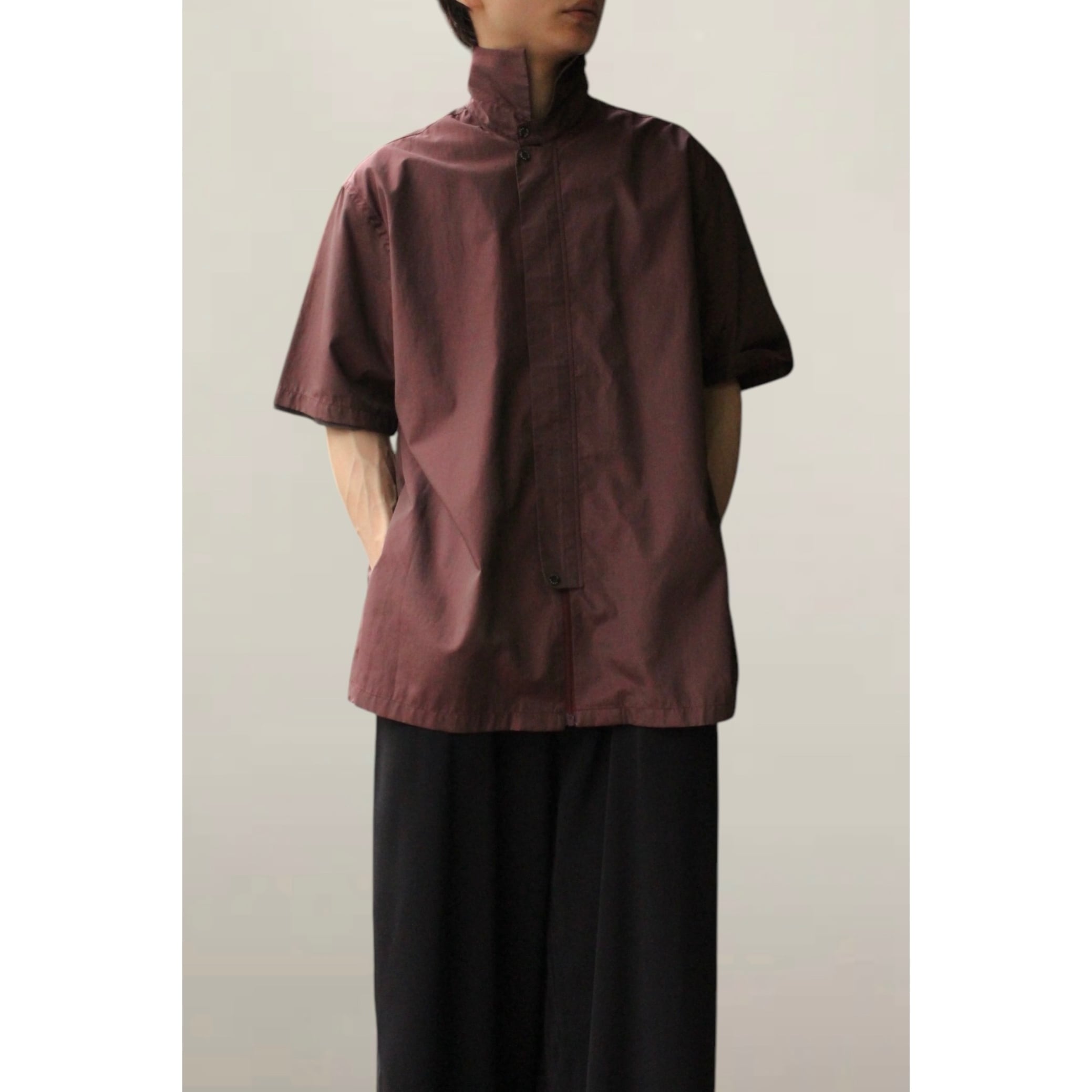 このブランドらしいでディテールでシャツながらスナップボタンとジップアップでミニマムなデザイン。チンスト付きなのでハイネックでも着用可能です◎
