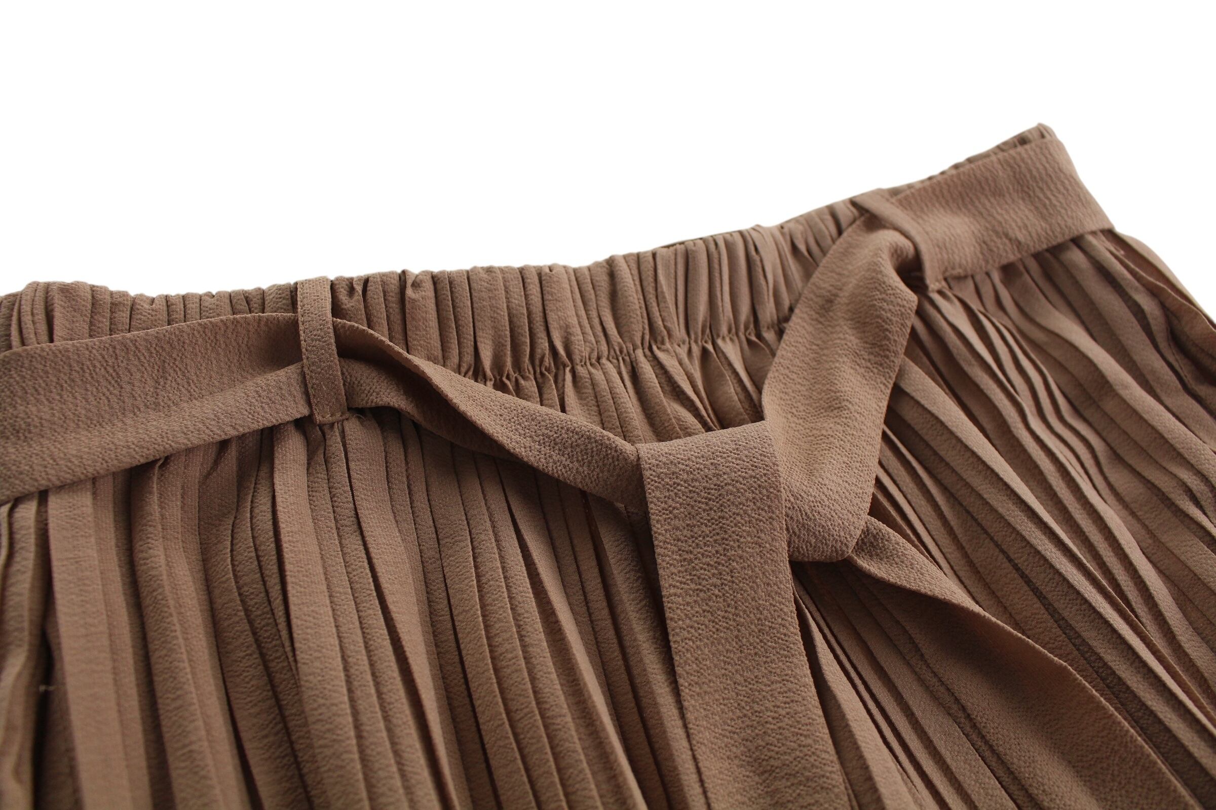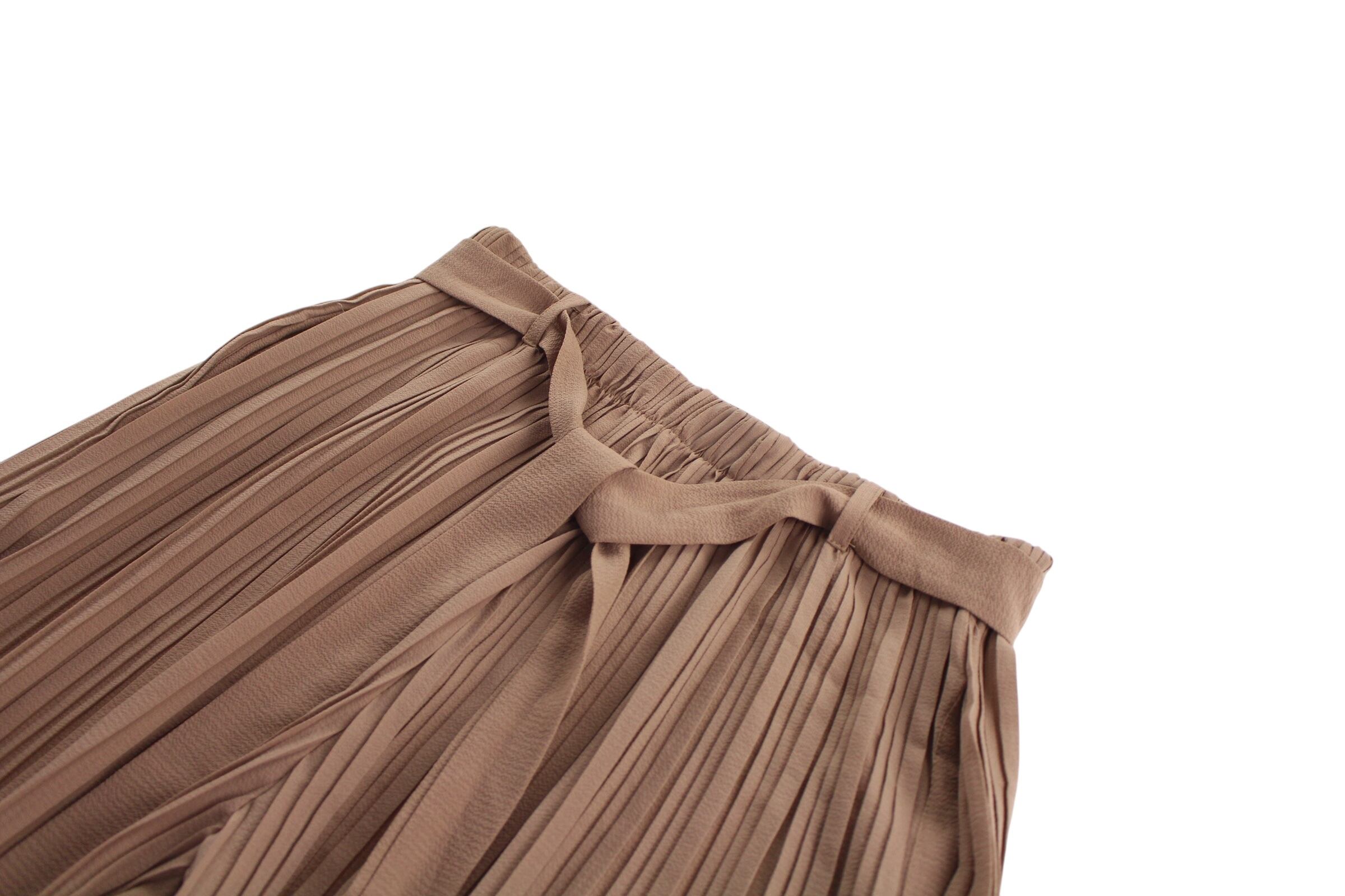 ポリ素材の艶のあるプリーツパンツなので上品な印象に仕上がります。