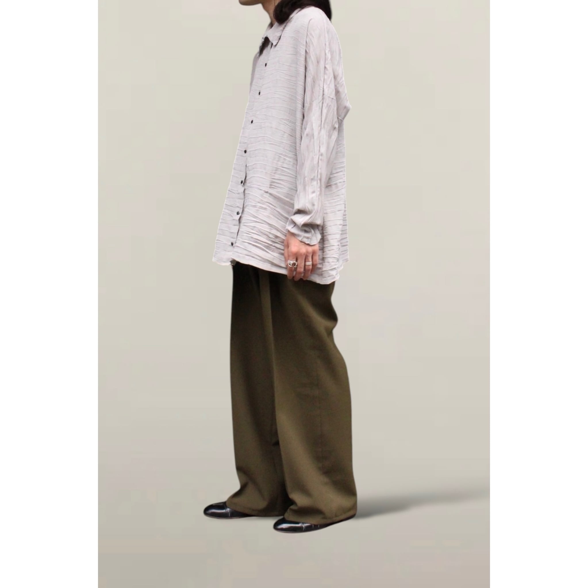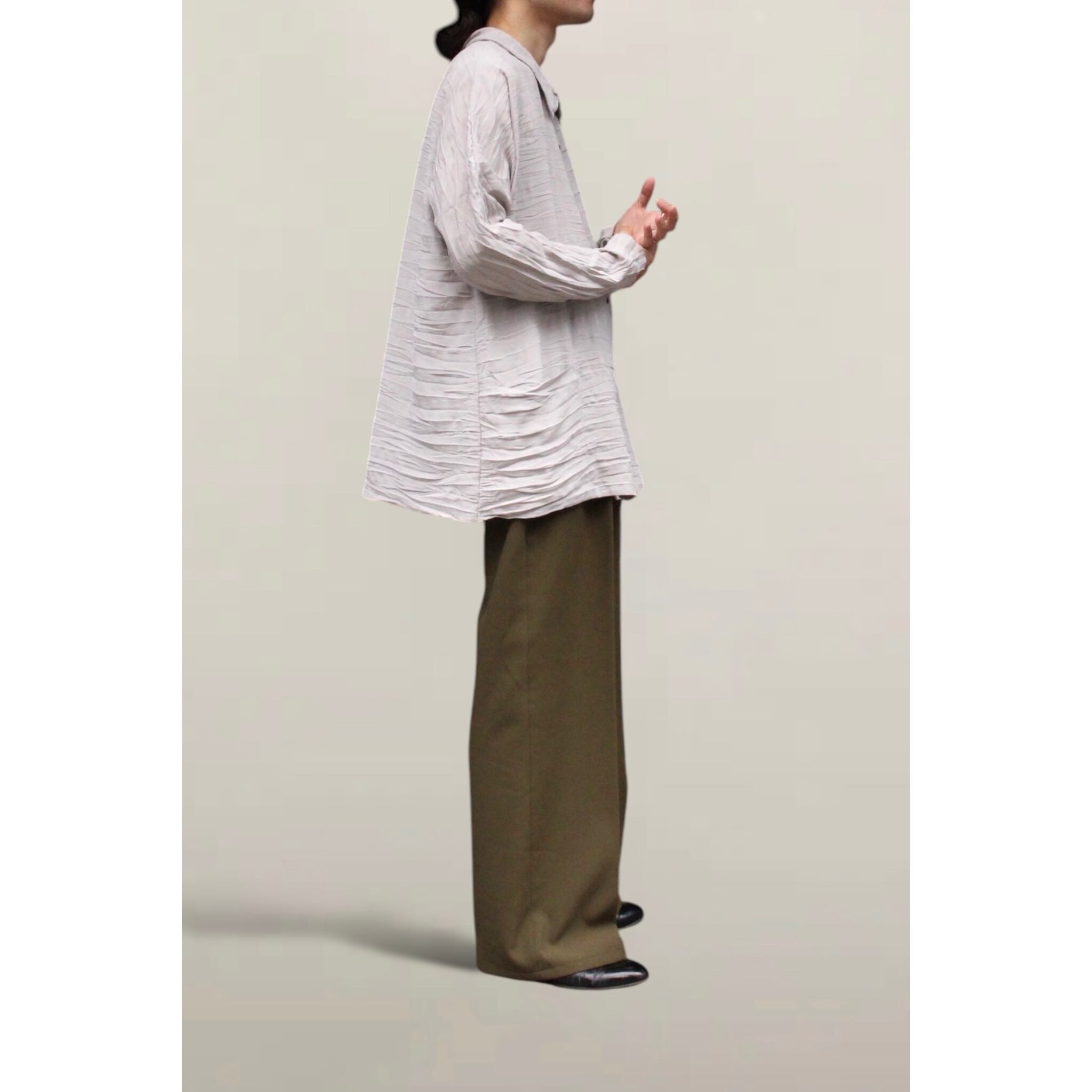 シャツ同様かなり薄手な生地でメンズL程のルーズなサイズ感でご着用頂けます。