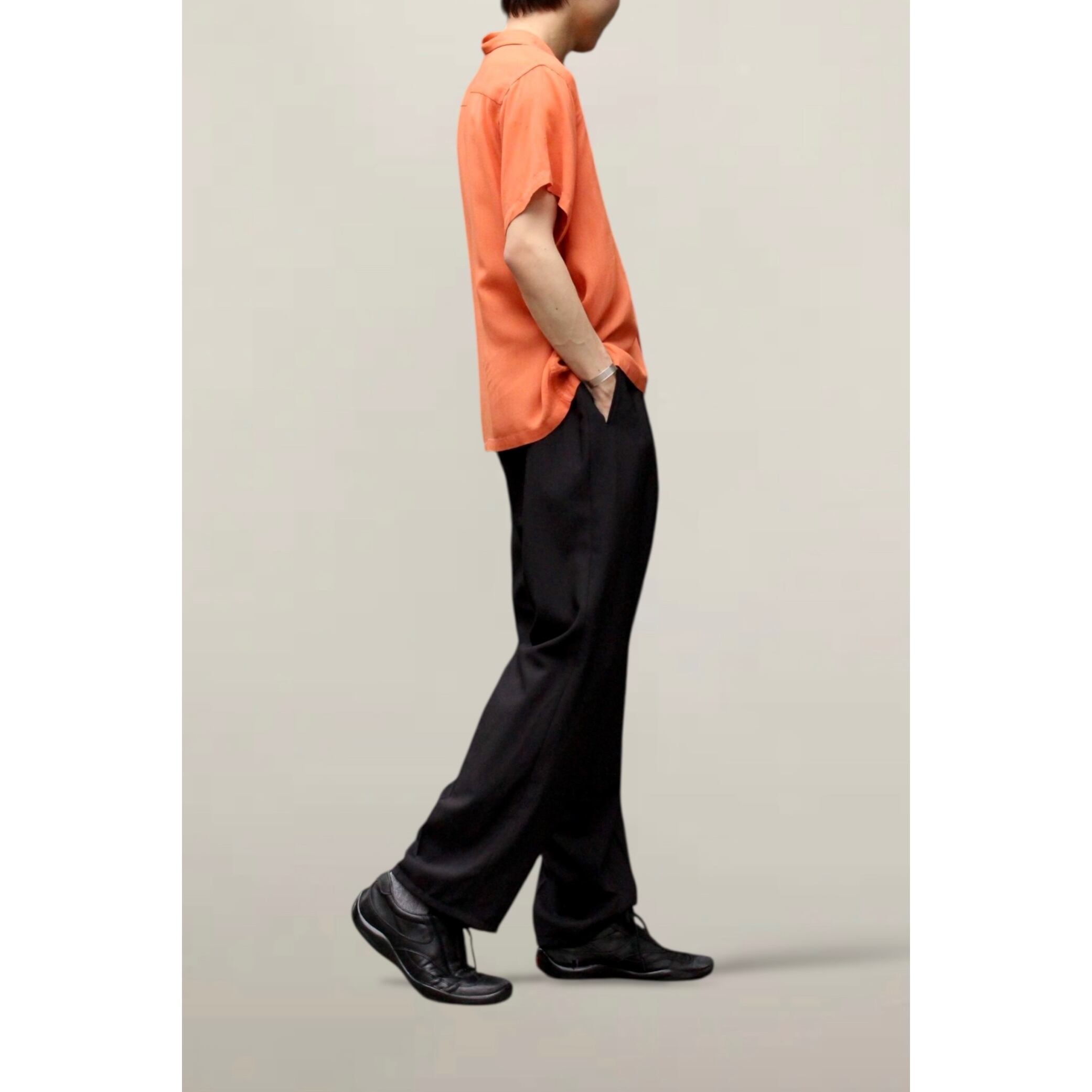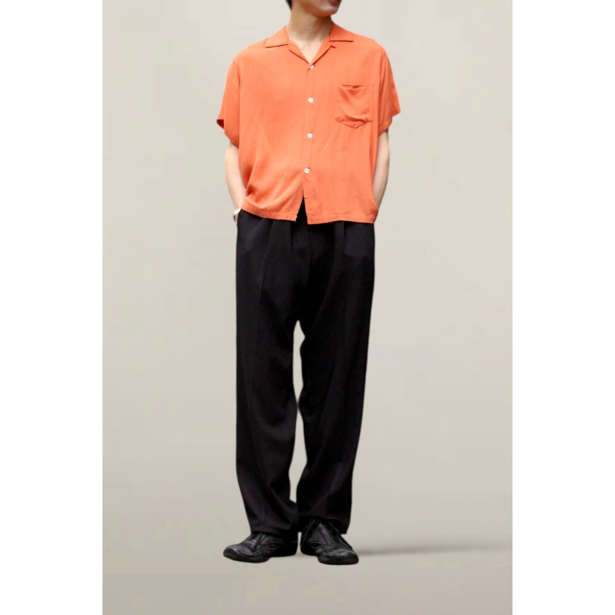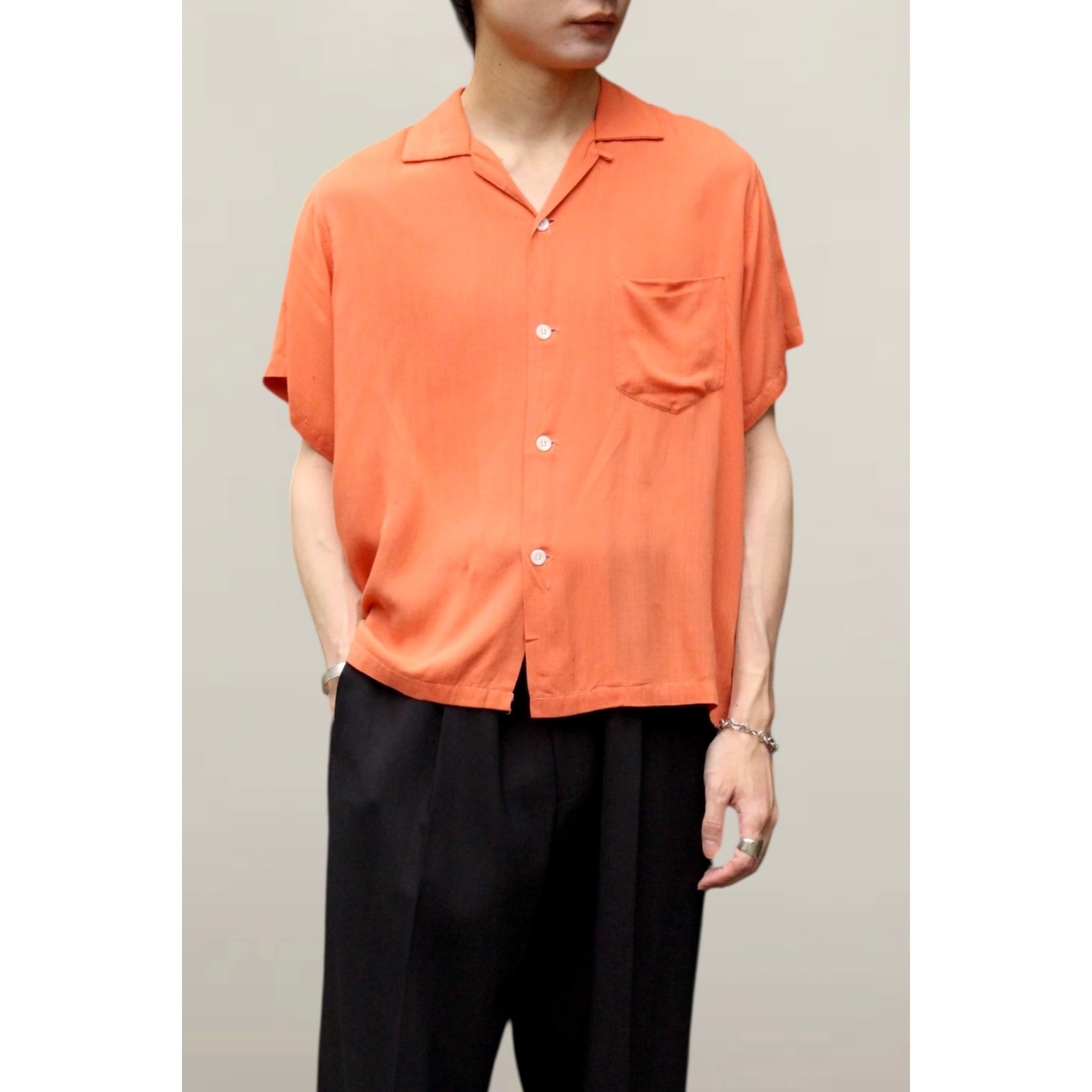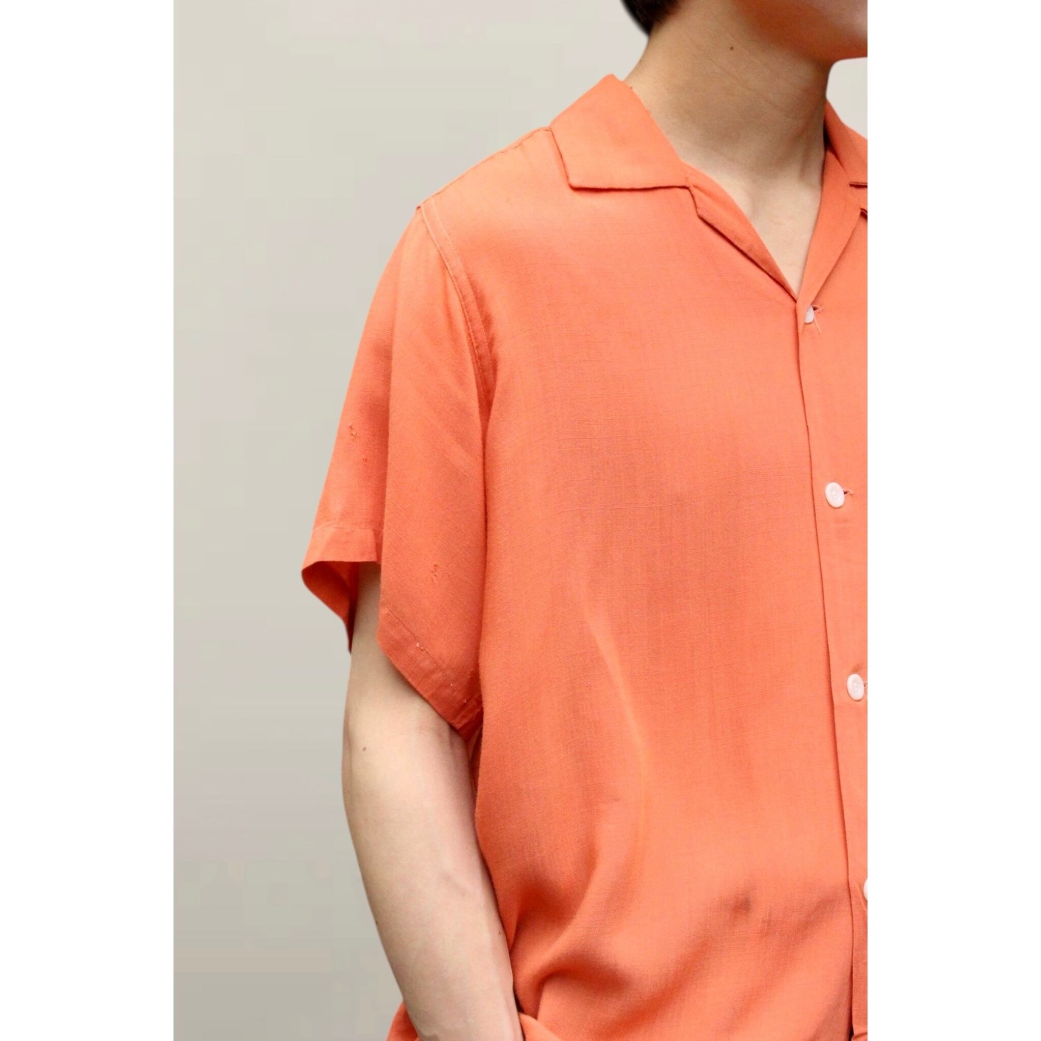 ライトオレンジの柔らかい風合い。レーヨン生地も相まって雰囲気の良さまで味わえます。綺麗にスラックスを合わせるもよし、カジュアルにデニムやカーゴパンツ、ショーツも◎