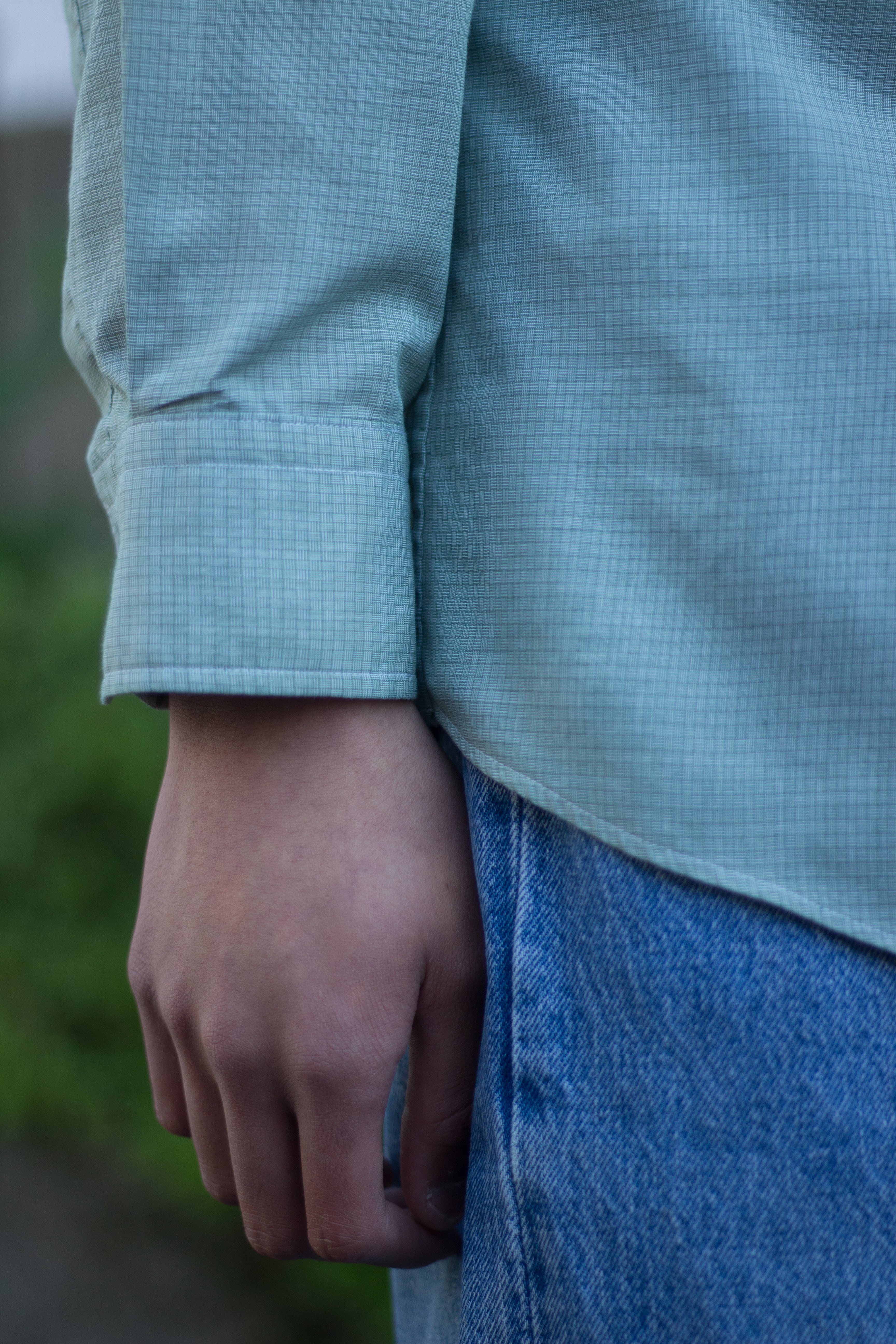 通年心地良く着用できるサラッとした軽やかなコットンポリ生地。
