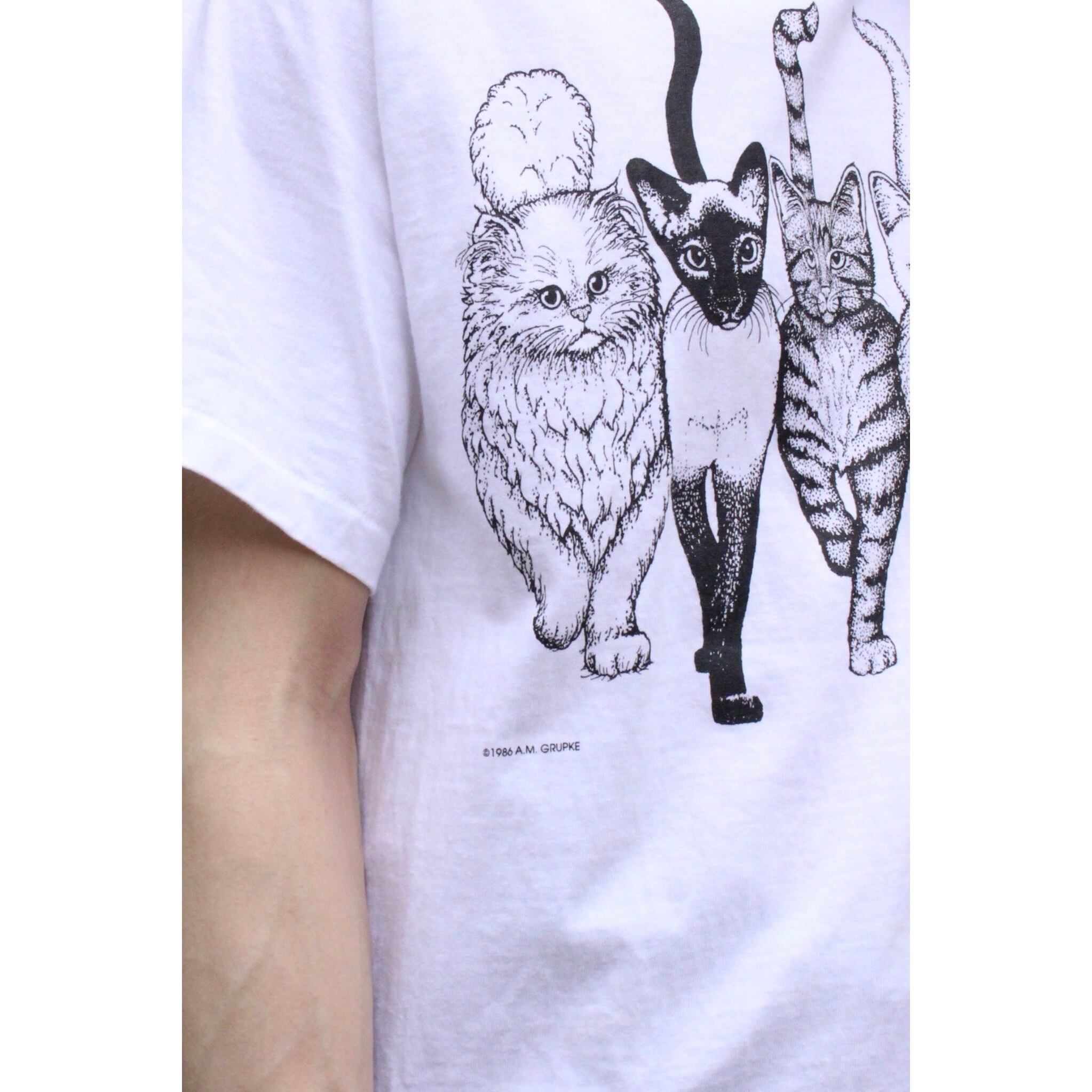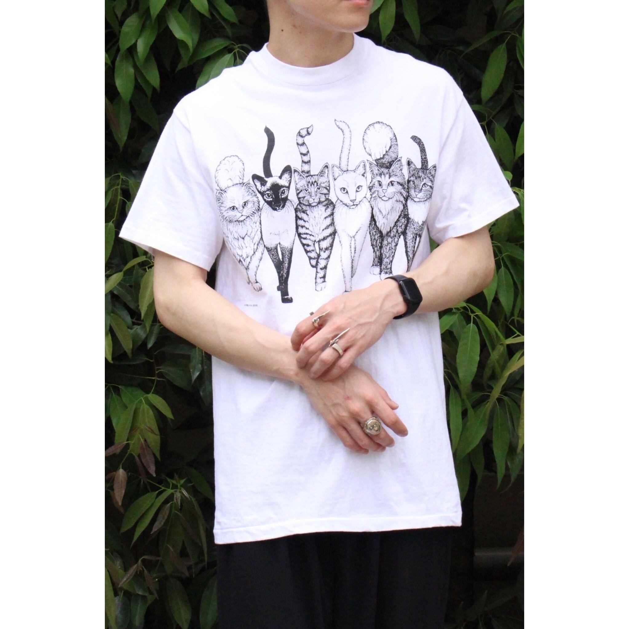 【COU】1990s vintage HANES both sides various cat print tee -6339-